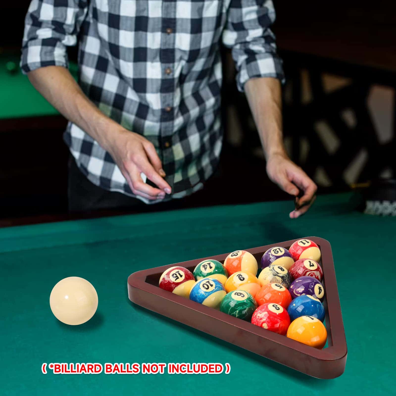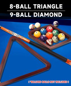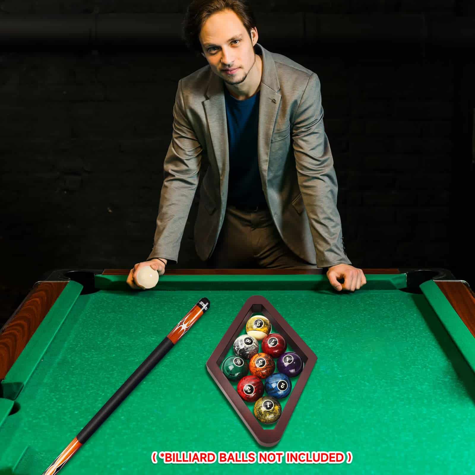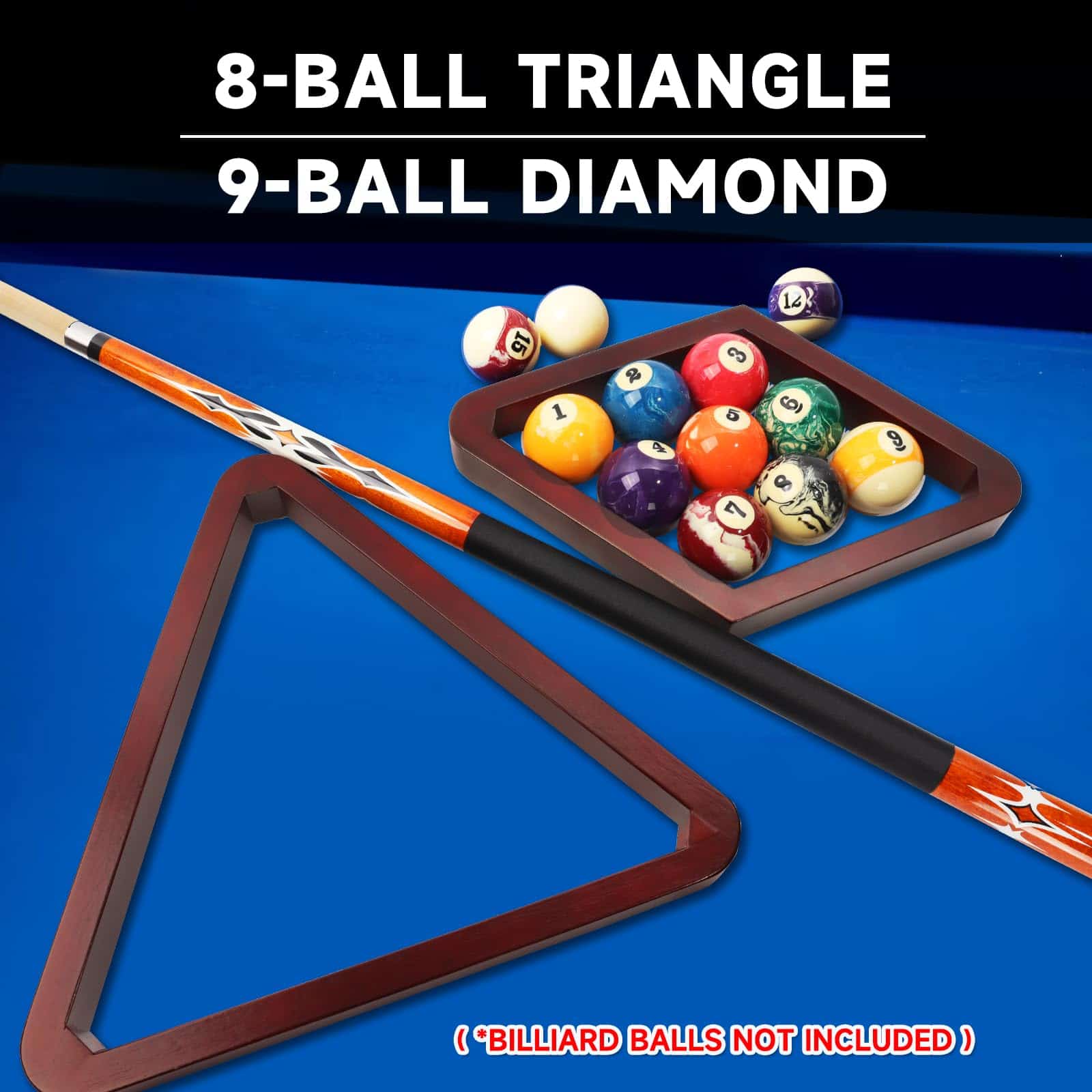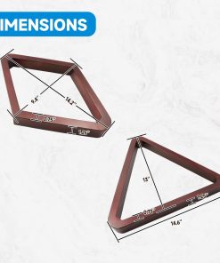 3. Tamaño: Las dimensiones del soporte triangular de 8 bolas son 14.6 x 13 x 1.25 pulgadas, las dimensiones del soporte de diamante de 9 bolas son 14.2 x 9.4 x 1.25 pulgadas.