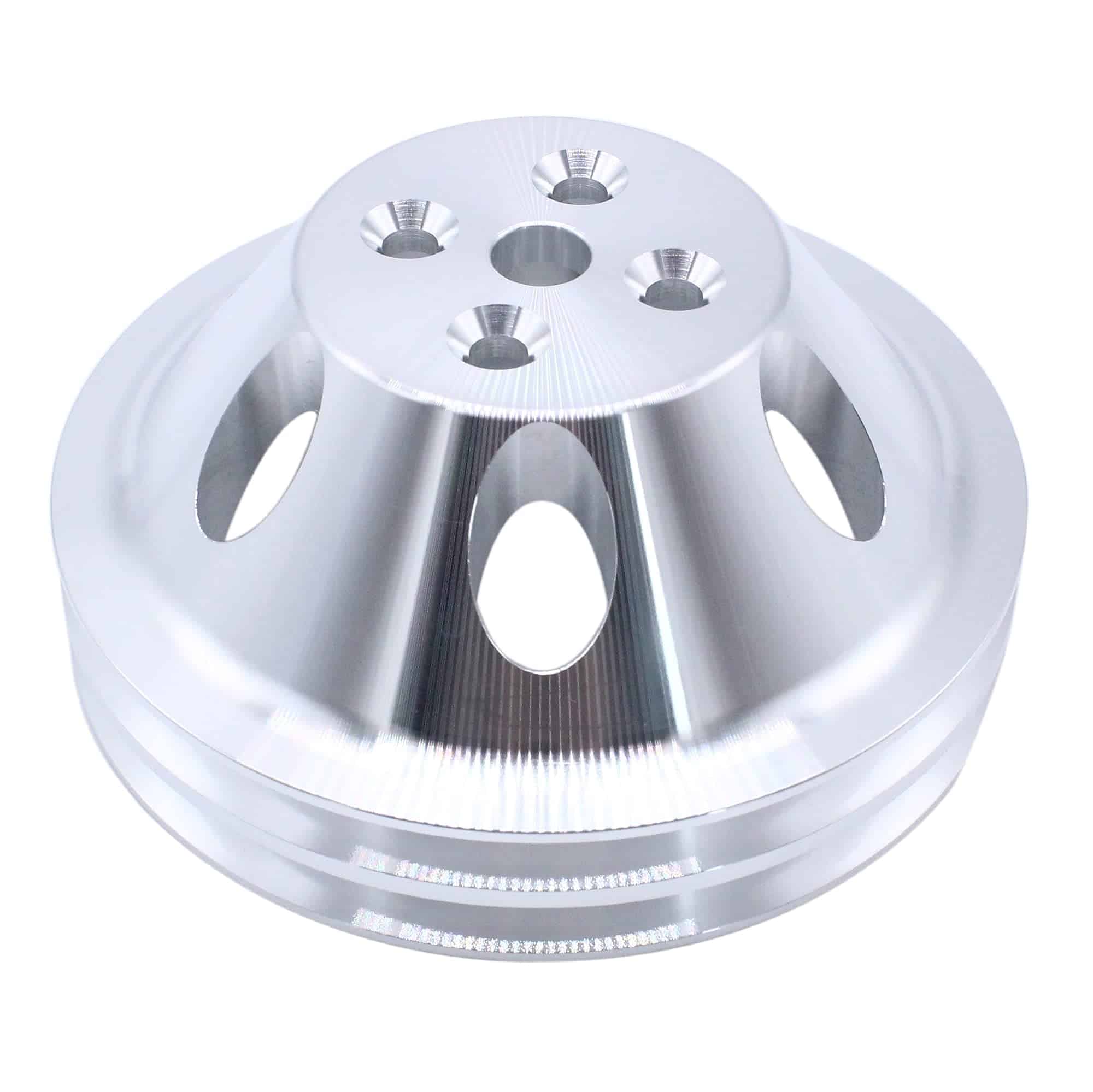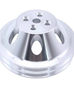 Polea de Bomba de Agua Superior de Aluminio 100% nueva GSKMOTOR. Esta es una polea de doble ranura diseñada para tu Small Block Chevy 283 – 350 con una Bomba de Agua Corta. Fabricada en aluminio de calibre grueso y con un acabado de aluminio satinado de alta calidad, este kit sería una gran adición a tu proyecto.