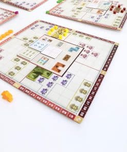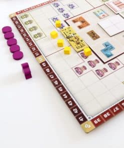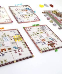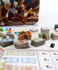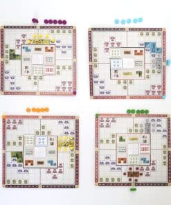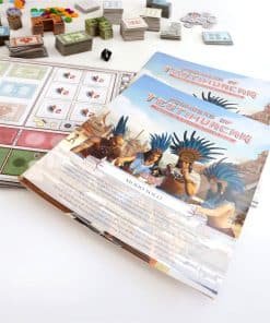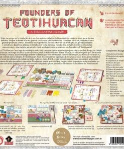 Fundadores de Teotihuacan es un juego de mesa de estrategia de colocación de losetas. Viaja en el tiempo al momento de la fundación de una de las ciudades más grandes de Mesoamérica y vuelve a ser parte de su historia. Diseña la base de una gran civilización precolombina, con sus edificios, templos y una gran pirámide en el centro. Demuestra ser el mejor entre arquitectos competidores y tu proyecto te asegurará un lugar entre los grandes fundadores de Teotihuacan! En Fundadores de Teotihuacan, de 1 a 4 jugadores compiten por crear la ciudad mejor diseñada de Teotihuacan. A lo largo de tres o cuatro rondas, los jugadores colocan sus discos en espacios de acción, formando torres de diferentes fuerzas, y realizan acciones que les permiten construir templos, edificios y la pirámide central de su visión de Teotihuacan. Equilibrar la generación de recursos y su uso se vuelve cada vez más difícil, mientras buscas ubicaciones adecuadas en tu tablero de ciudad, y tratarás de superar a tus oponentes, haciendo uso de un sistema de acción innovador e interactivo. Una vez que llega el eclipse, todos los diseños son evaluados y el jugador que obtenga más puntos gana.