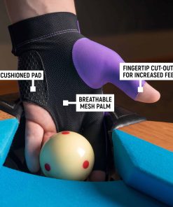 El Guante de Billar McDermott proporciona un golpe suave y consistente al reducir la fricción entre tu mano y el eje. Se ajusta a la mano IZQUIERDA para jugadores diestros. Material ligero y elástico para mayor comodidad. Palma de malla transpirable con almohadilla acolchada para una mejor estabilidad y confianza en tu juego. Recortes en la punta de los dedos para un mayor tacto. Correa ajustable de gancho y lazo alrededor del área de la muñeca para asegurar un ajuste ceñido. Un regalo perfecto para cualquier jugador de Pool, Snooker, Pirámide y Billar.