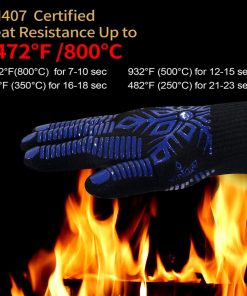 Mantenga sus manos seguras y cómodas con nuestros guantes resistentes al calor que pueden soportar temperaturas de hasta 1472 F. Los guantes de horno constan de 3 materiales. El primer material es silicona, el segundo material es fibra de aramida de ultra alta resistencia, el tercer material es algodón de poliéster proporciona suficiente suavidad en el interior. Utilizamos materiales de protección contra incendios de la más alta calidad para garantizar la máxima seguridad y protección. El diseño antideslizante y la silicona apta para alimentos garantizan un rendimiento superior. Son ideales para manipular objetos calientes durante la cocción, parrilla, horneado y soldadura. ¡No se preocupe por que la bandeja de hornear se le resbale de las manos de nuevo! Nuestros guantes de barbacoa con silicona densa a prueba de calor antideslizante en ambos lados. Además, los dedos separados le permiten moverse de forma más cómoda y flexible. Los guantes de horno con dedos se adaptan a más del 95% de las manos gracias al ajuste ceñido actualizado y el diseño de cinco dedos. La extensión de la muñeca añade una capa adicional de protección contra quemaduras. Estos guantes de barbacoa son perfectos para una variedad de usos relacionados con el calor y vienen en un tamaño que se adapta a la mayoría de las manos. La anchura del puño le permite ponerlos y quitarlos fácilmente y proporciona elasticidad para adaptarse a la mayoría de los tamaños de manos. Cuando esté cocinando, horneando, sosteniendo ollas, manejando parrillas de fumadores y pueda concentrarse en sus tareas de cocina. Nuestros guantes de cocina de uso múltiple son perfectos para parrillas, horneados, cocinados, fritos, trabajos de soldadura, hogueras, ahumado y mucho más. Sin importar para qué los use, nuestros guantes de parrilla le ofrecen la máxima protección y seguridad. También es el mejor regalo para papá/novio en el Día del Padre. Los guantes son fáciles de limpiar, puede lavarlos con jabón o simplemente meterlos en la lavadora. Proteja a usted mismo, a sus padres, amigos con los guantes de parrilla de Bryan juntos. Además, nuestros guantes de cocina son un regalo ideal para el Día de la Madre, el Día del Padre, Navidad, Acción de Gracias, Año Nuevo.