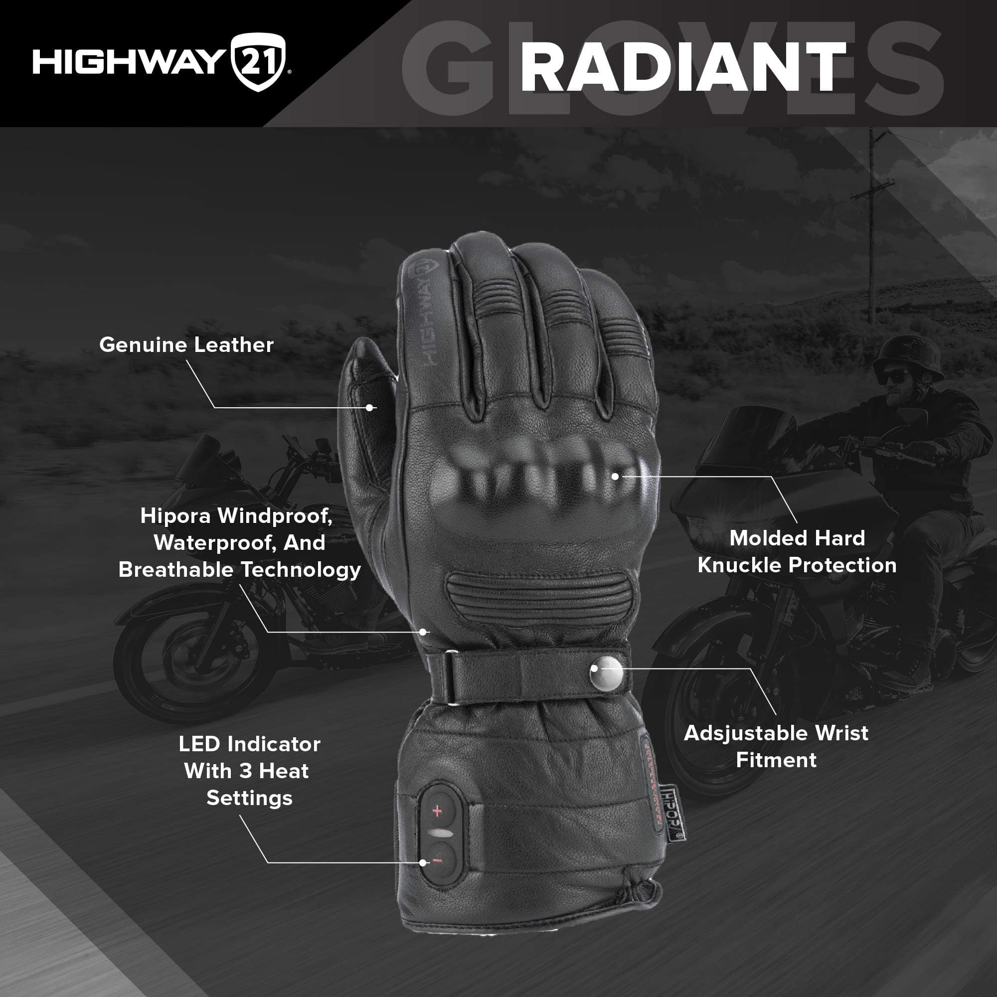 Los guantes calefactables para hombre Highway 21 Radiant son alimentados por batería de litio. El revestimiento Hipora mantiene las manos secas mientras la batería de litio las mantiene calientes.