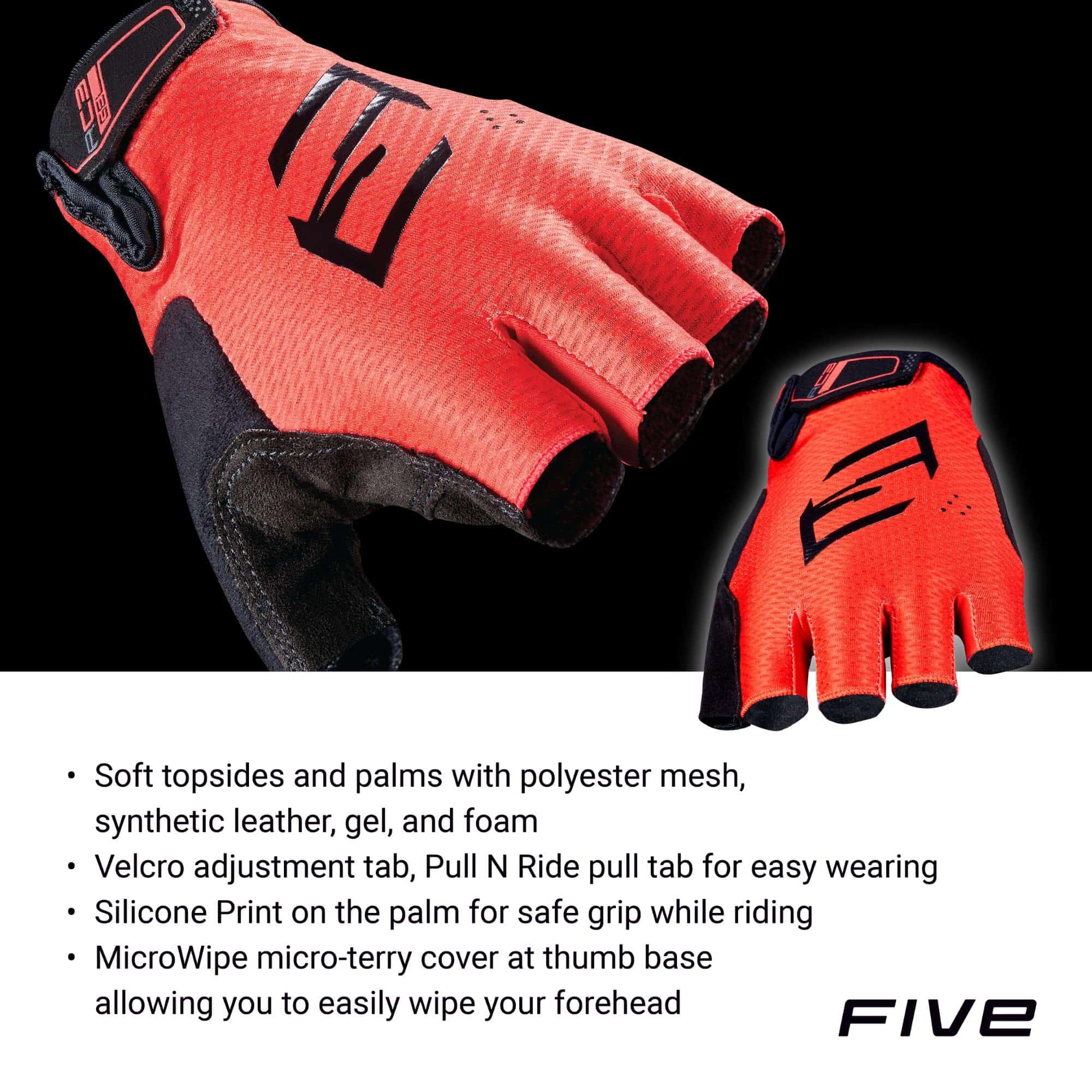 5. Haz la elección correcta en guantes de ciclismo – Desde hace casi 20 años, FIVE Gloves ha estado ayudando a los ciclistas a mejorar su diversión en el manillar mientras protegen las manos de lesiones en caso de una caída, equipando a millones de entusiastas del ciclismo en todo el mundo con guantes certificados CE. Nuestro compromiso se puede resumir en tres palabras: Protección, Ajuste y Diseño con comodidad, nivel de protección y durabilidad en mente. Añade nuestros productos a tu equipo de motociclista querido.