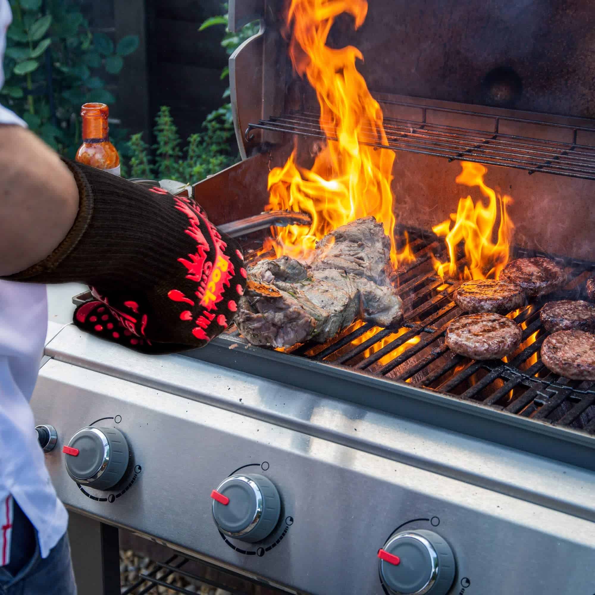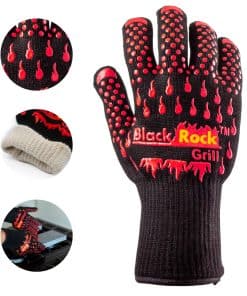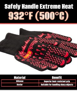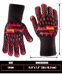 Ya sea que estés horneando, manejando objetos afilados, manejando piedras calientes de lava o atendiendo a una parrilla, estufa de leña o fogata, estos guantes son una adición crucial a tus elementos esenciales de cocina. Administra de manera segura artículos en temperaturas de hasta 932 F/500 C con nuestros guantes cuidadosamente probados, garantizando una seguridad superior. La sobresaliente capacidad de agarre los convierte en la opción ideal para manejar sin esfuerzo objetos más pesados con precisión y control. Prioriza la seguridad y la precisión en cada tarea. Experimenta una seguridad de primer nivel con nuestros guantes, meticulosamente diseñados con silicona de alta calidad para una seguridad óptima. Diseñados para proteger tus manos en temperaturas de hasta 932 F/500 C, estos guantes brindan un agarre seguro que supera a los guantes de horno convencionales. Fáciles de limpiar, simplemente lavar a mano. Si nuestros Guantes de Seguridad Black Rock Grill no cumplieron con tus expectativas, ¡no te preocupes! Tu satisfacción es nuestra máxima prioridad y te cubrimos con un proceso de devolución fácil. Disfruta de un período de devolución de 30 días para una experiencia sin problemas.