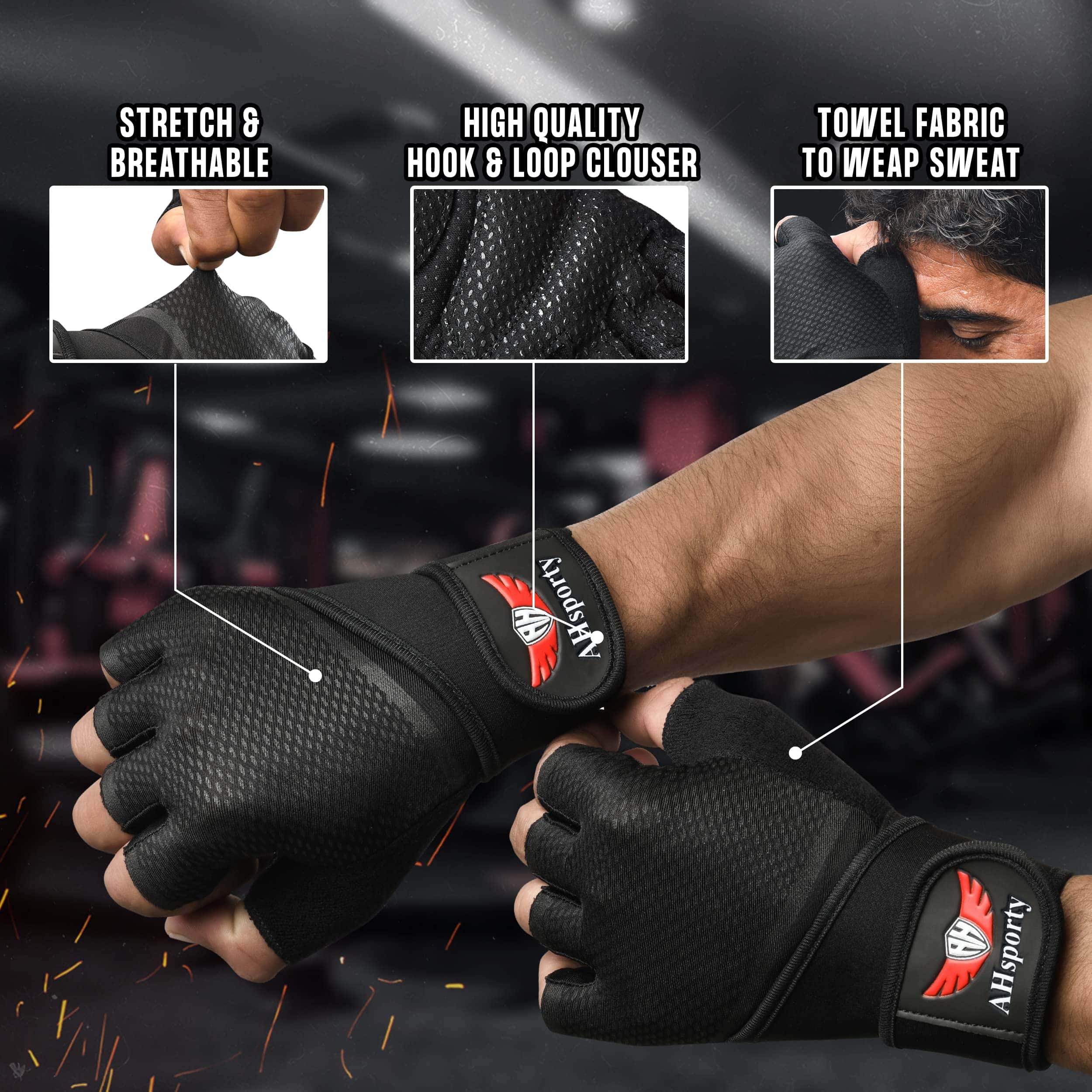1. Calidad mejorada con protección reforzada- Basados en miles de datos de consumidores, los guantes de levantamiento de pesas AHSporty están hechos de neopreno impreso con silicona resistente al agua, Velcro de alta calidad y panel de toalla en la parte posterior; Estos guantes de entrenamiento mejoran la protección de los músculos y articulaciones de las manos contra ampollas y callos.