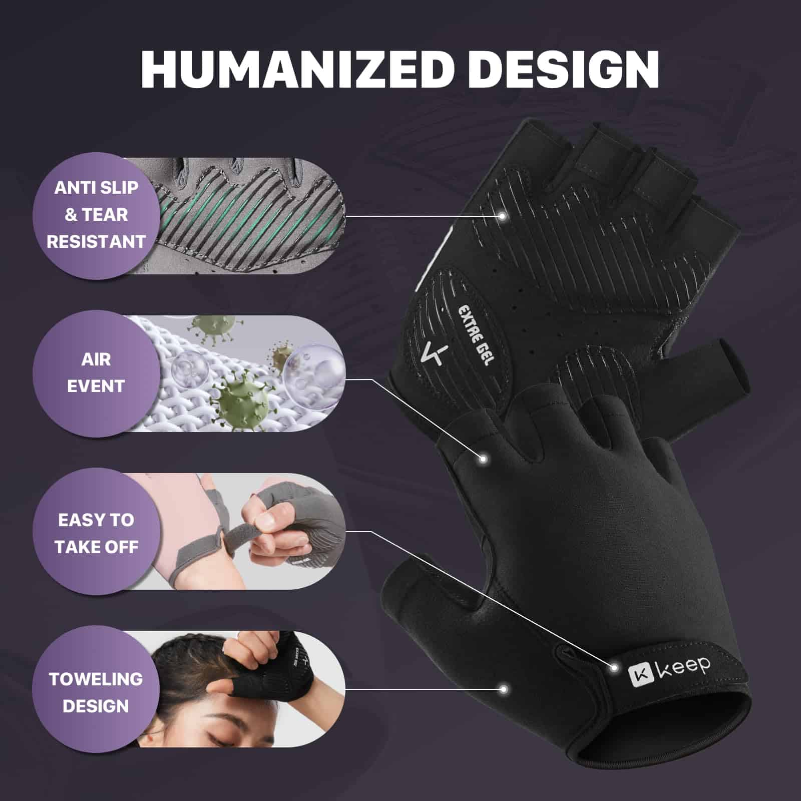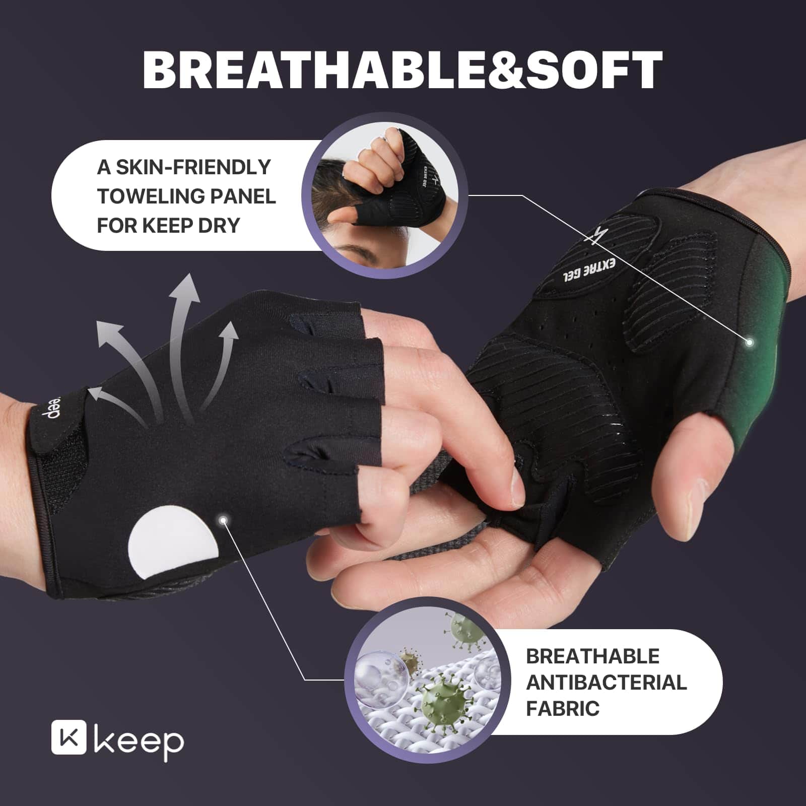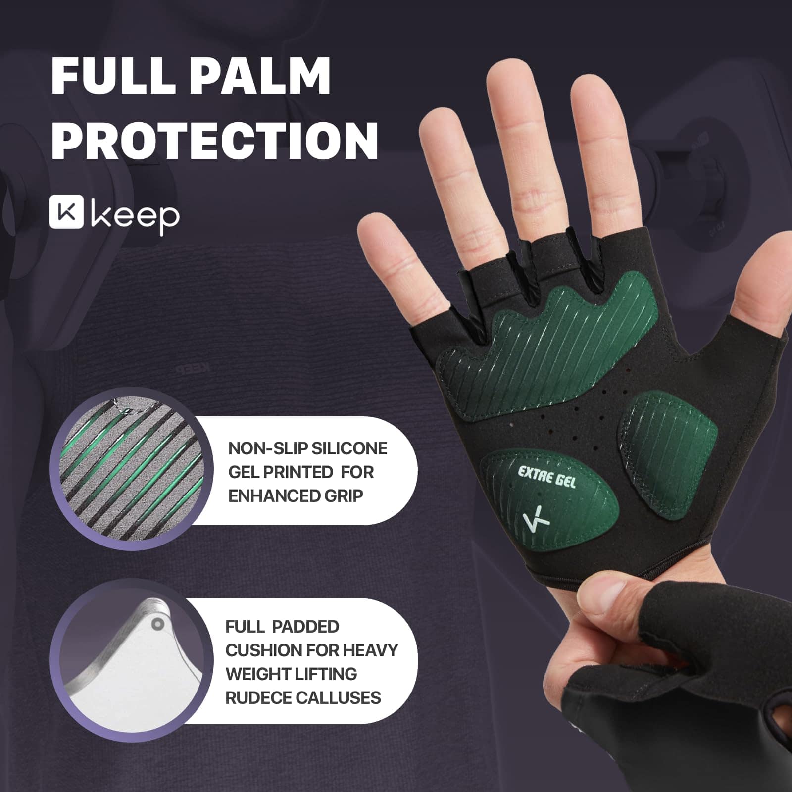 1. Protección completa de la palma y agarre superior – Guantes deportivos KEEP diseñados ergonómicamente con acolchado de gel multidireccional, estos guantes ofrecen protección mejorada contra abrasiones en el entrenamiento, protegiendo tus manos de callos y ampollas. La impresión de silicona lineal proporciona un agarre extra pegajoso también.