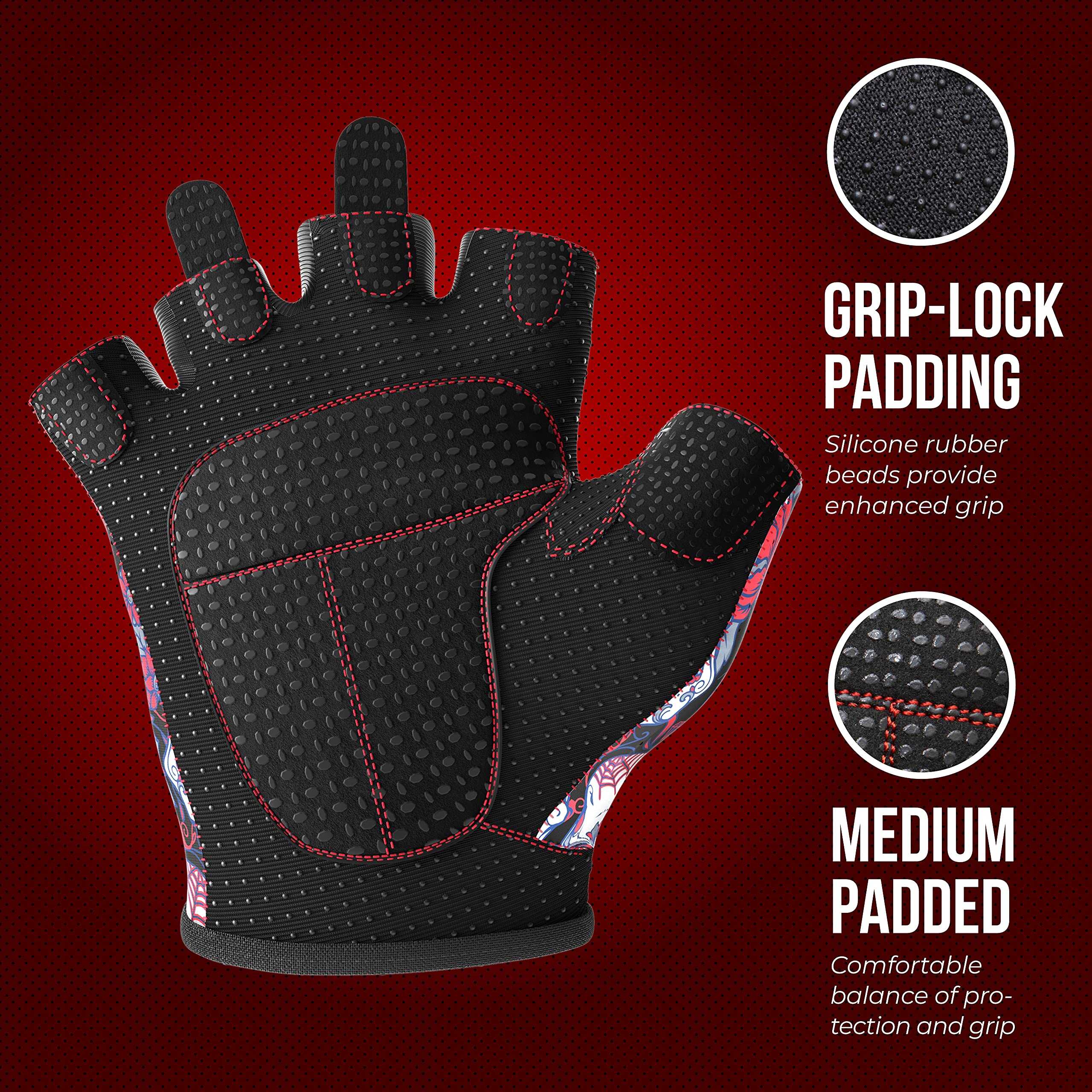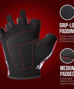 1. ACOLCHADO GRIP-LOCK – Nuestros guantes de entrenamiento para mujeres tienen cuentas de goma de silicona que proporcionan un mejor agarre que el cuero tradicional. Te ayuda a agarrar el equipo de gimnasio de forma segura sin perder el agarre. Nuestros guantes de ejercicio para mujeres también cuentan con una palma medianamente acolchada que proporciona una cantidad equilibrada de protección y agarre.