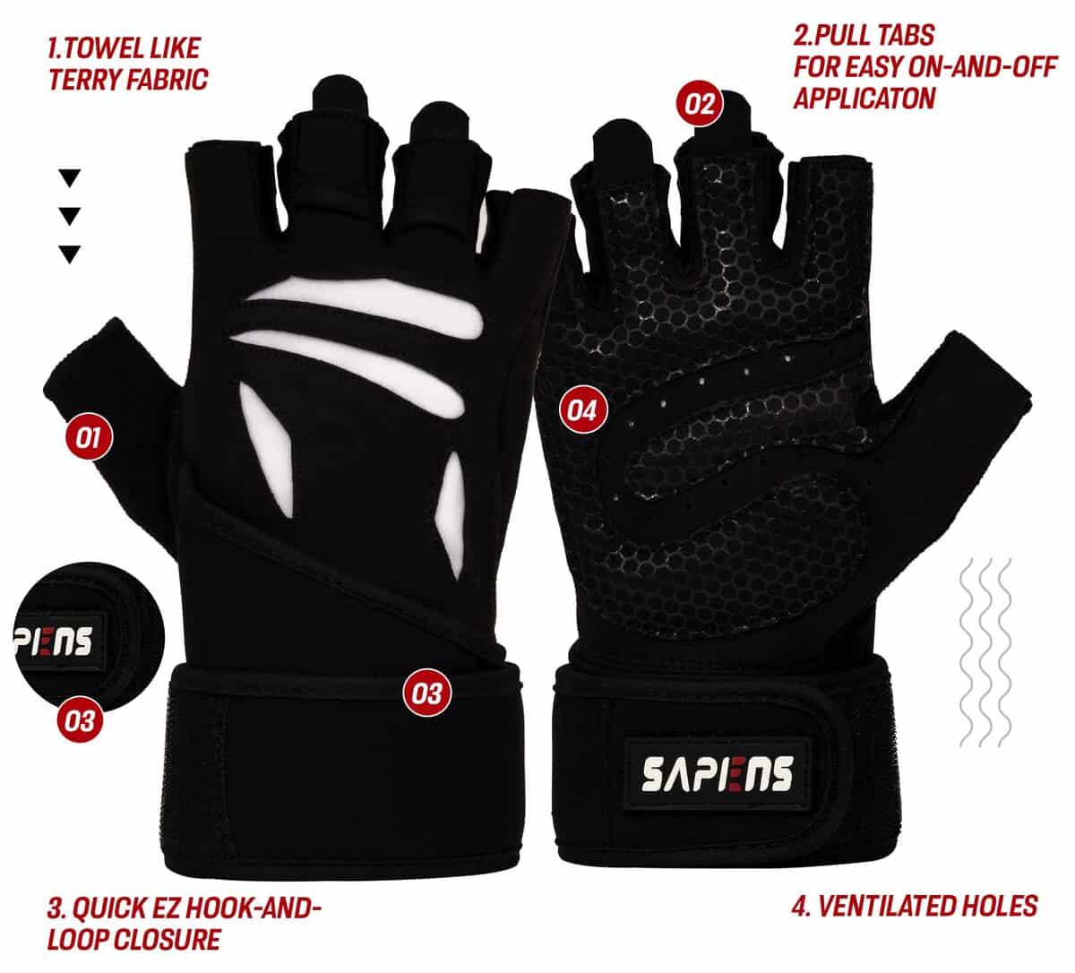 Suda a mares. Los guantes de gimnasio Sapiens fueron hechos para ayudarte a alcanzar tus metas en el gimnasio. Estos guantes te proporcionarán el agarre para lograr esa figura perfecta que siempre aspiraste. La mayor transpirabilidad te brinda comodidad y facilidad para levantar pesas, mientras que el exterior de Amara de moda con su diseño de agarre impreso en silicona hace que el guante de gimnasio sea perfecto para hacer esas repeticiones esenciales en tus entrenamientos. Su interior cómodo y el cierre único de gancho y lazo ofrecen el ajuste adecuado y mantienen tu muñeca estable con el soporte necesario para series más pesadas. Bajo las tensiones y levantamientos del asiduo del gimnasio, estos guantes mantienen un agarre fuerte mientras te brindan una perfección ajustada para obtener esas ganancias. Diseñados con una sola cosa en mente, darte la mayor comodidad que puedas imaginar desde un agotador y desgarrador entrenamiento hasta levantar pesas pesadas