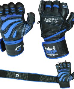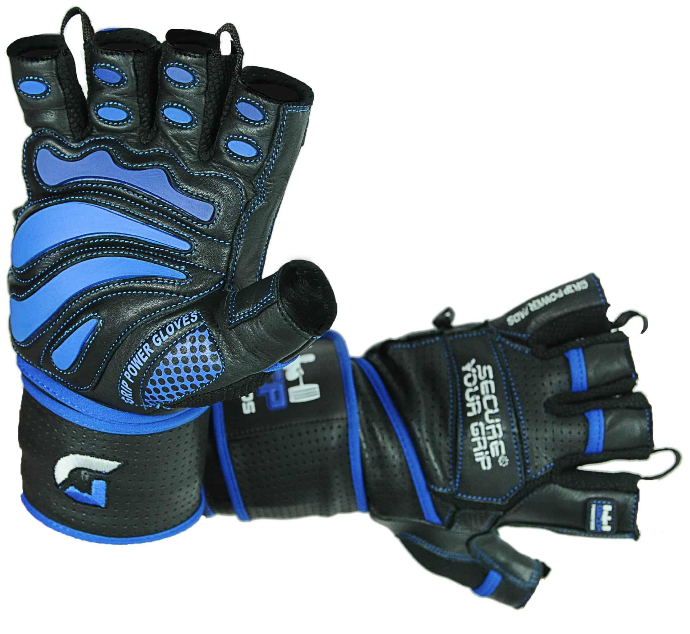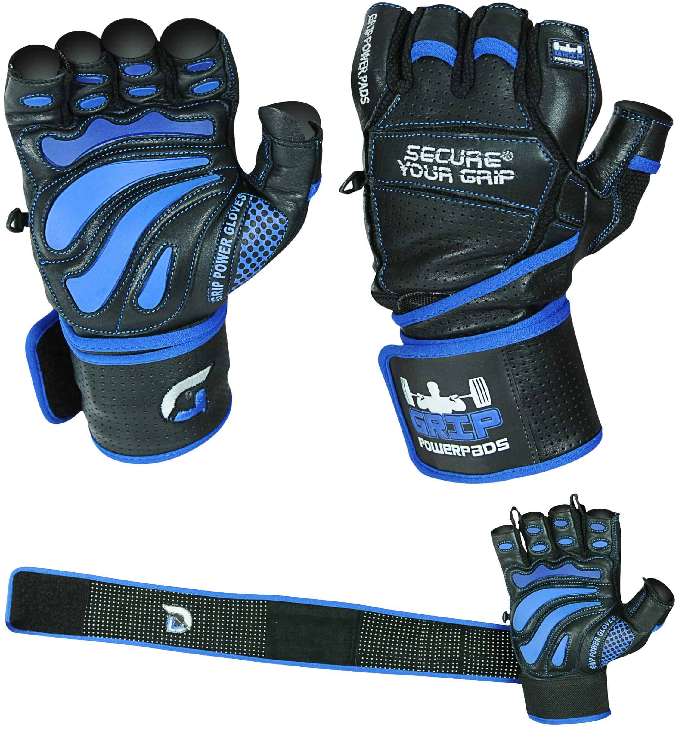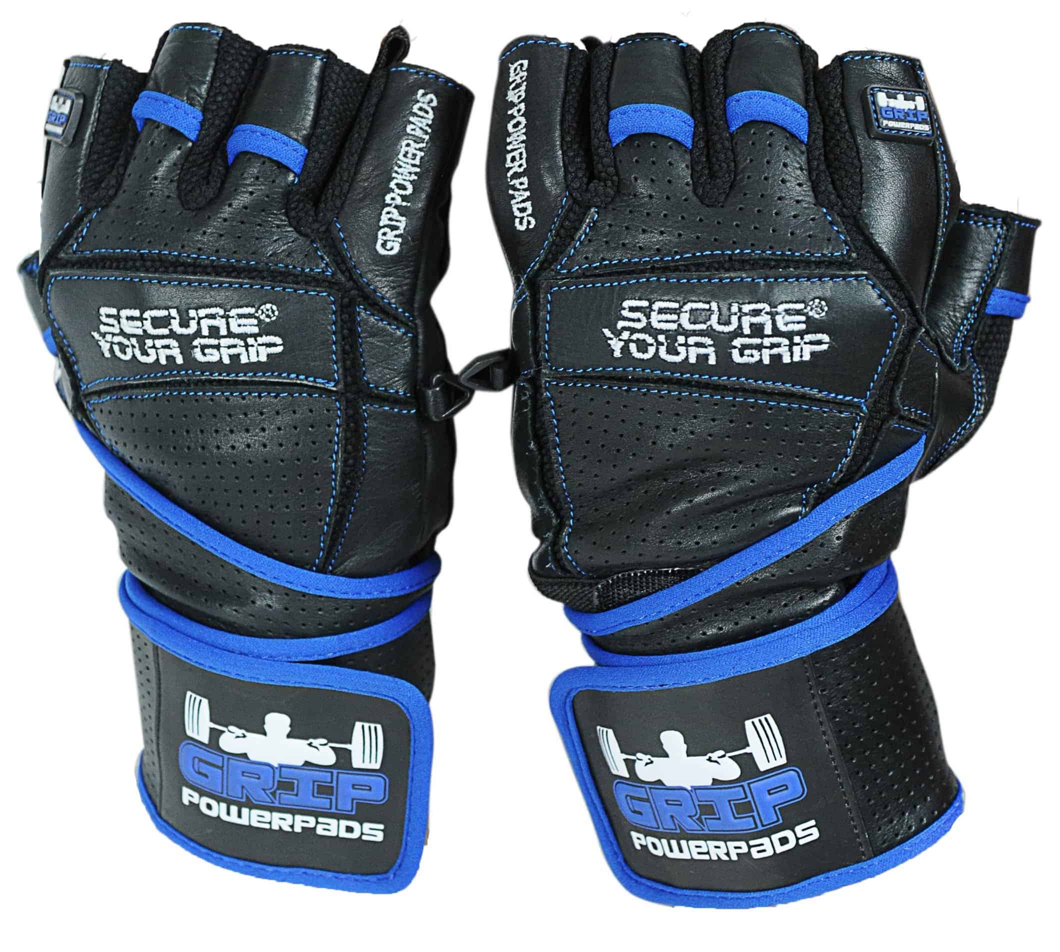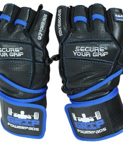 Guantes de Gimnasio de Cuero Elite con Muñequeras -Azul