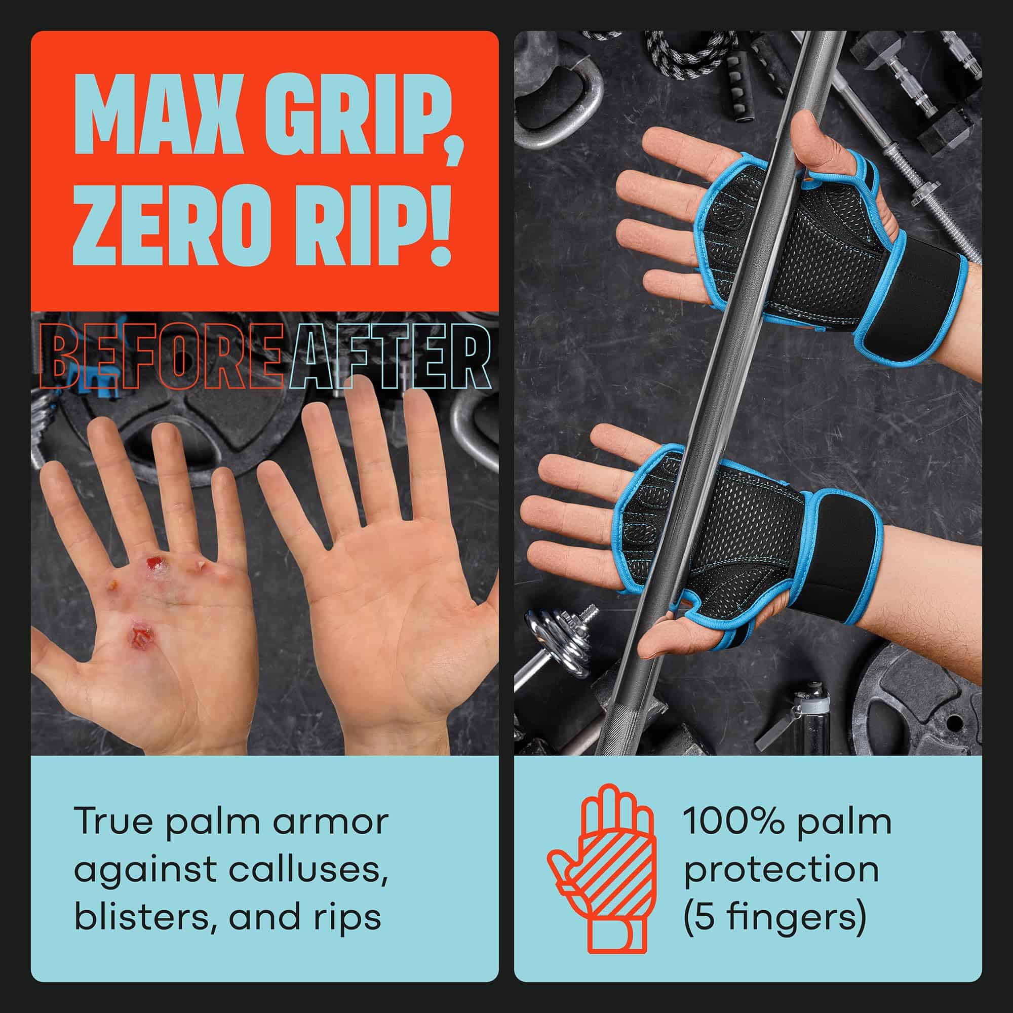 1. ULTRA PROTECCIÓN. Estos guantes abiertos para levantamiento de pesas evitan callos, ampollas y desgarros. Con base de neopreno, capa anti-callos, vendas para la muñeca y agarres de silicona, estos guantes para hacer ejercicio garantizan seguridad y comodidad durante sesiones intensas. 2. SIGUE HACIENDO PROGRESO. Los guantes de gym con soporte para muñeca amplían tu rango para varios entrenamientos. Integrados en estos guantes de ejercicio para hombres y mujeres, proporcionan soporte ortopédico, reduciendo la tensión y lesiones. Ideal para hombres que levantan pesas. 3. FLUJO DE AIRE LIBRE. Los guantes de gym para mujeres y hombres deben ser cómodos y transpirables. Estos guantes de gimnasio tienen un diseño de mano abierta para una circulación de aire adecuada, previniendo el sobrecalentamiento y sudoración excesiva. Guantes perfectos para todos los entrenamientos. 4. ENTRENAMIENTO VERSÁTIL DESBLOQUEADO. Estos guantes de gimnasio para mujeres y hombres vienen en tallas XSXL, que se ajustan a todos. Úselos como guantes de yoga, guantes de remo, guantes de entrenamiento, y guantes deportivos para WODs, fitness, escalada en cuerda y más. 5. CALIDAD Y ESTILO. El ajuste anatómico de los guantes de levantamiento de pesas para hombres y mujeres cuenta con costuras reforzadas de doble puntada para mayor durabilidad. Estos guantes de entrenamiento con pesas lucen geniales y avanzados, mostrando a tus amigos del gimnasio que eres serio. Guantes esenciales para hombres.