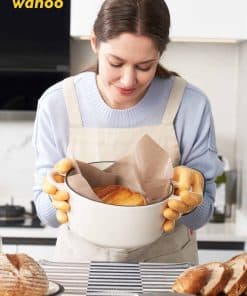 1. Guantes de silicona líquida de grado alimenticio: Nuestros guantes para hornear están hechos de silicona líquida no pegajosa, el material más avanzado para guantes de horno. Estos guantes tienen una alta resistencia a la tracción, resisten el uso diario y mantienen su rendimiento día tras día. Nuestra empresa es la PRIMERA EN TRAER guantes de silicona líquida al mercado.
