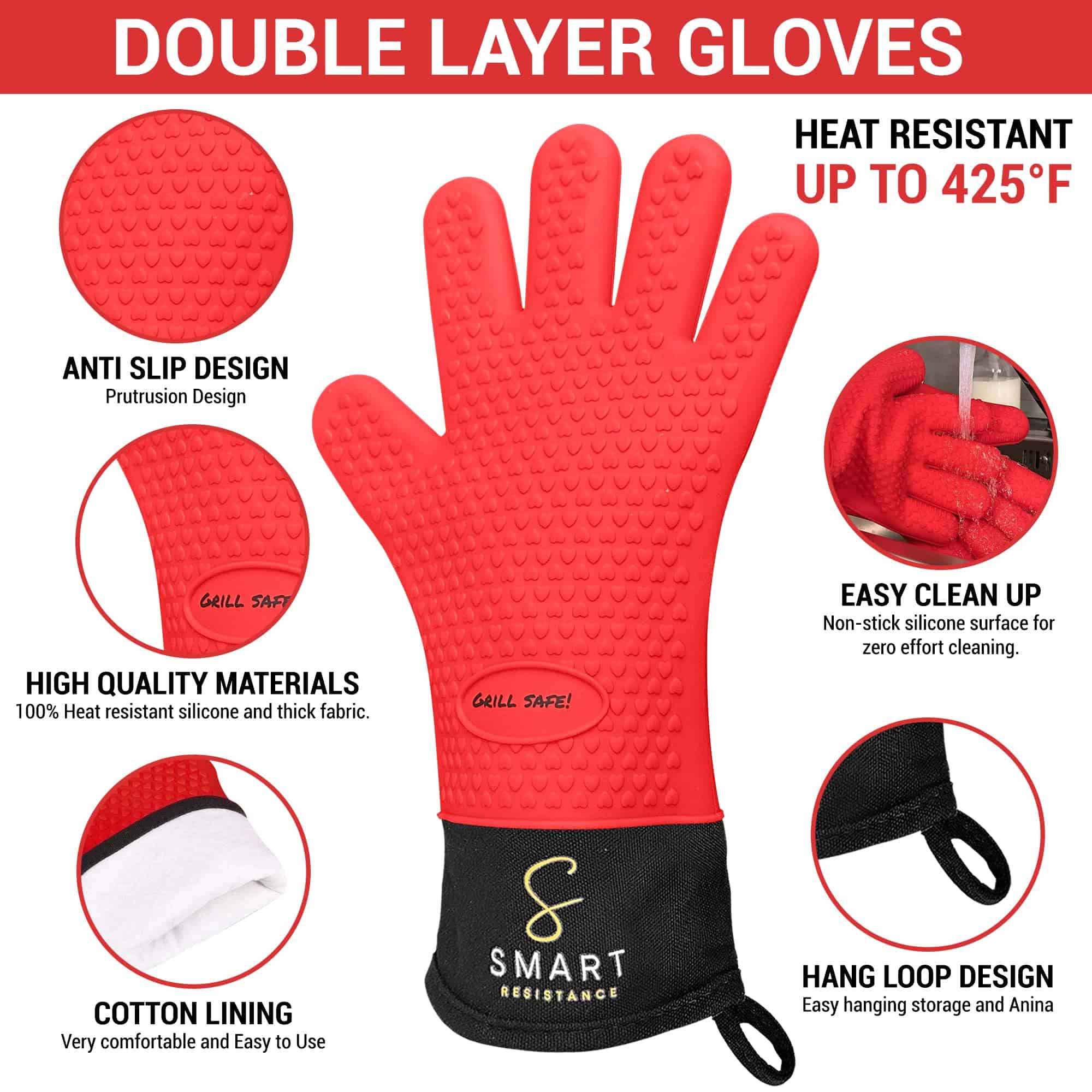 1. Resistencia al calor máxima – Capaz de soportar temperaturas de hasta 425 . agarra de forma segura platos calientes, ollas y bandejas.