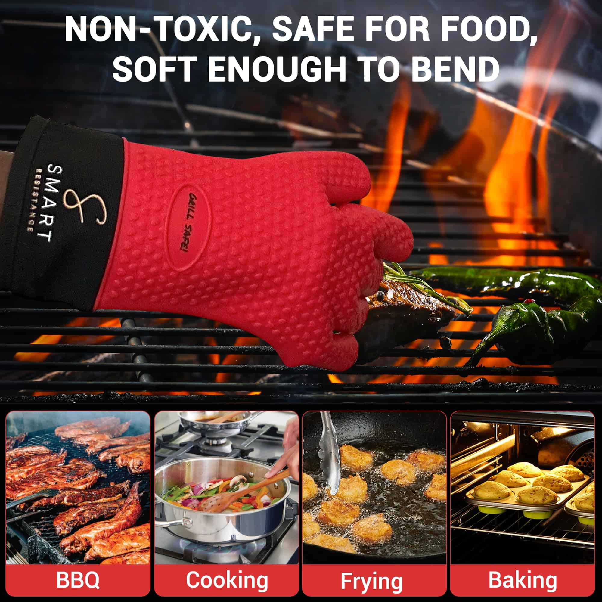3. AMPLIO USO – herramienta de cocina más versátil y adecuada para hornear, cocinar y asar a la parrilla. Con una superficie texturizada para proporcionar un agarre fuerte y antideslizante.