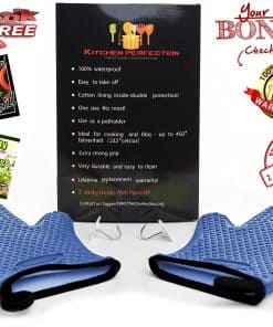 3. Diseñados pensando en la comodidad y la seguridad, los guantes de cocina de Kitchen Perfection ofrecen un agarre antideslizante que se adapta perfectamente tanto a hombres como mujeres. Son ideales para protegerse del calor en ahumadores, parrillas de gas para barbacoa y estufas en interiores. No aceptes imitaciones baratas, opta por la calidad y la protección de los guantes de Kitchen Perfection.