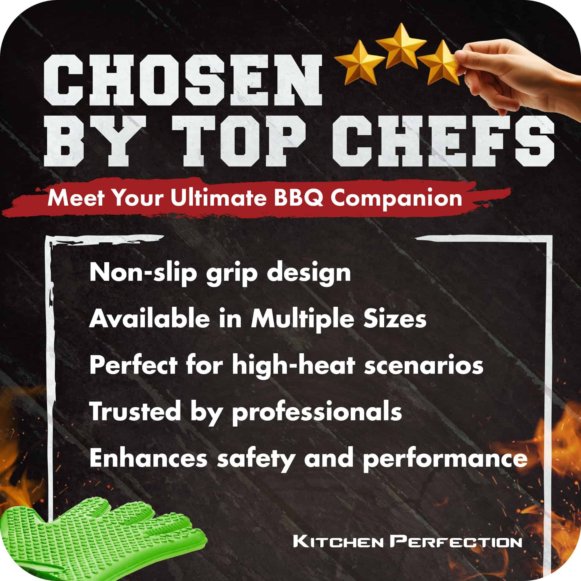 1. Los guantes definitivos para amantes de la barbacoa No te quemes, para tu protección usa los guantes de parrilla de 12 pulgadas Kitchen Perfection resistentes al calor para hombres, de alta calidad, hasta 500 grados duraderos, gruesa capa doble de algodón y silicona impermeable, aislamiento excepcional que se adapta tanto a manos extra grandes como pequeñas, úsalos para tu traeger, big green egg, freidora de pavo, ahumador oklahoma joe, chef de campamento, weber, rec tec, blackstone, pit boss, parrillas de gas y ahumadores de alta resistencia.