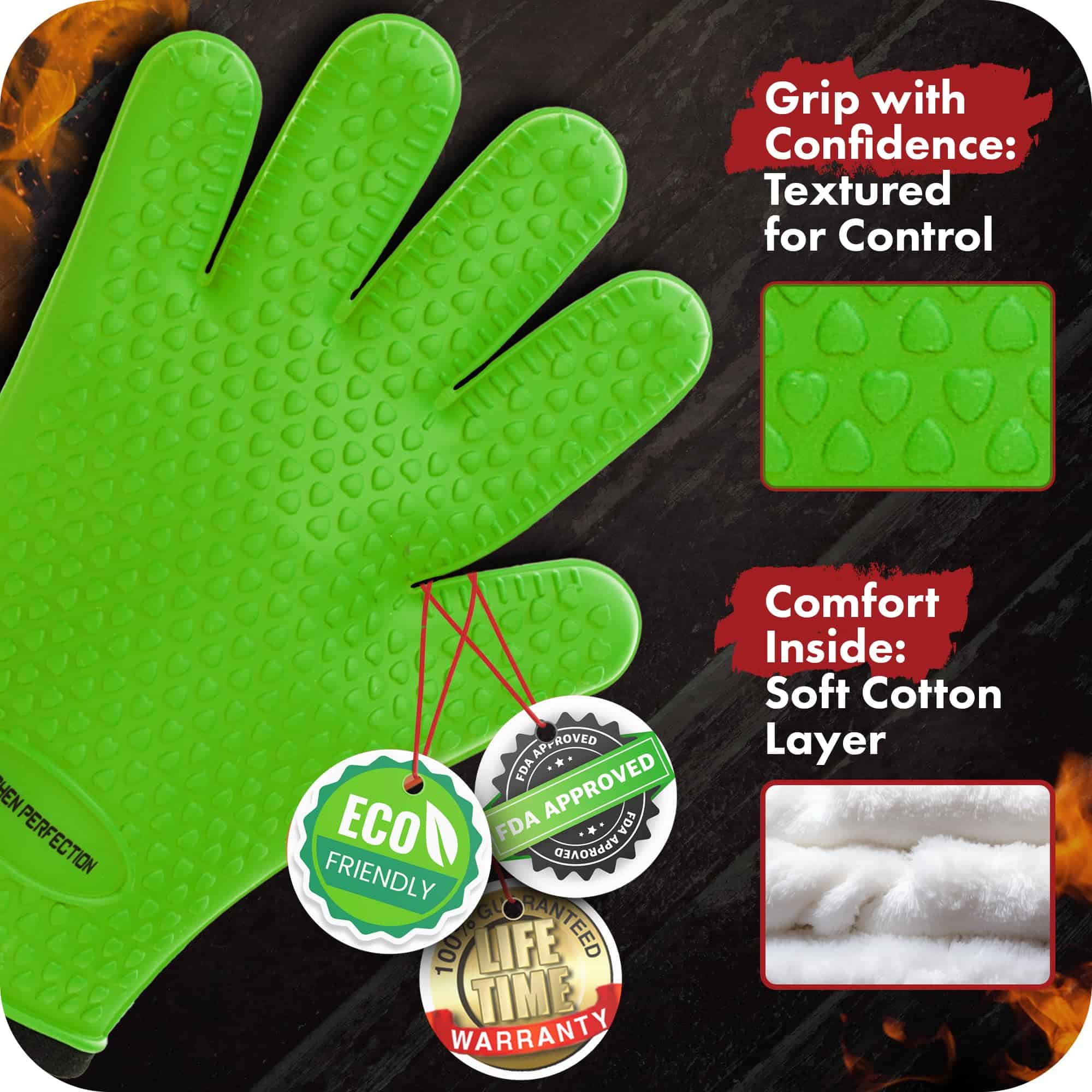 4. Por Kitchen Perfection – Si sientes que no obtuviste el mejor producto, estás más que bienvenido a contactarnos, estamos aquí para cualquier problema, problemas de tamaño y más. Estos son los mejores guantes de barbacoa para cocinar resistentes al calor para los guantes protectores de hombres y mujeres. ¡Por eso a todos les gustan tanto! Más te vale obtener algunos para regalar a tus amigos.