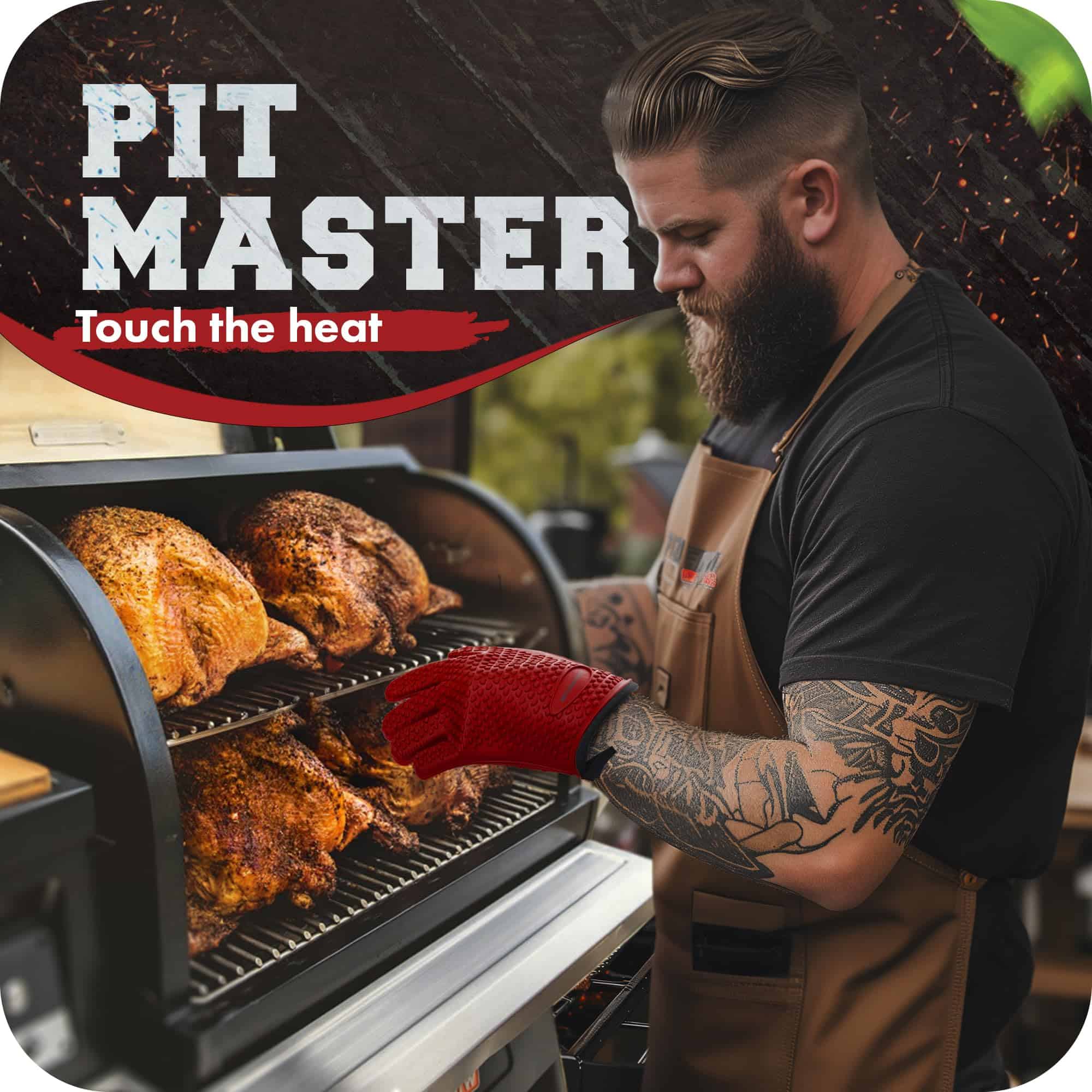 3. Estás en la Liga de los Mejores Chef – Después de hacer una encuesta de mercado entre chefs y parrilleros de renombre, logramos hacer el mejor guante de cocina cómodo con un agarre antideslizante, que se ajusta perfectamente a hombres y mujeres por igual, ¡simplemente el juego perfecto de 2 que te protegerá de cualquier peligro, desde el calor que emana de tu ahumador o parrilla de gas para exteriores hasta la de tu estufa en interiores! ¡Te tenemos cubierto! No te conformes con una imitación barata. Grandes regalos para papá accesorios para traeger.