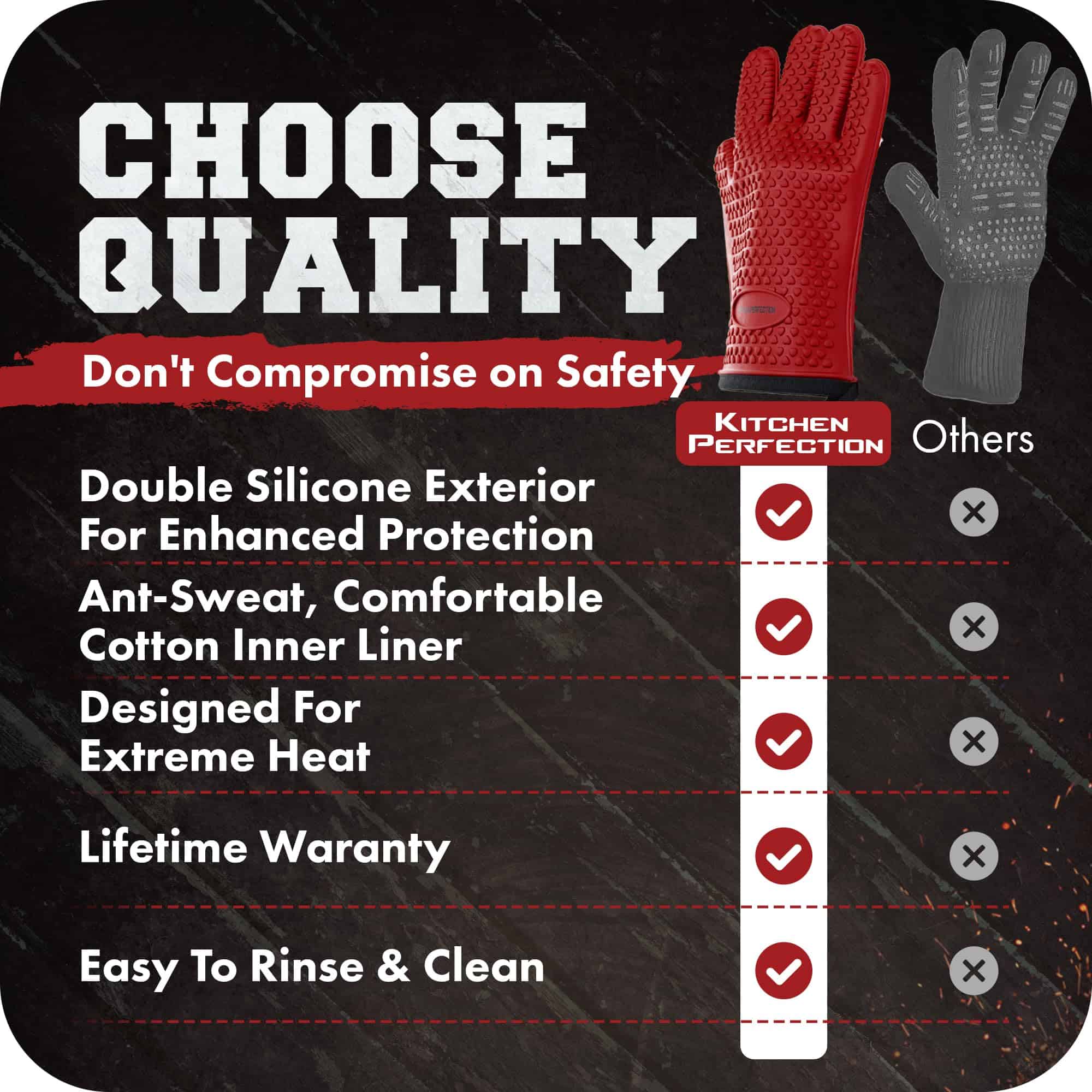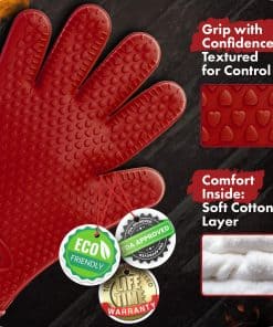4. Por Kitchen Perfection – Si sientes que no recibiste el mejor producto, no dudes en contactarnos, estamos aquí para cualquier problema, problemas de tamaño y más. Estos son los mejores guantes de barbacoa para cocinar resistente al calor para hombres y mujeres. ¡Por eso a todo el mundo les gustan tanto! Sería mejor que consiguieras algunos para regalárselos a tus amigos.