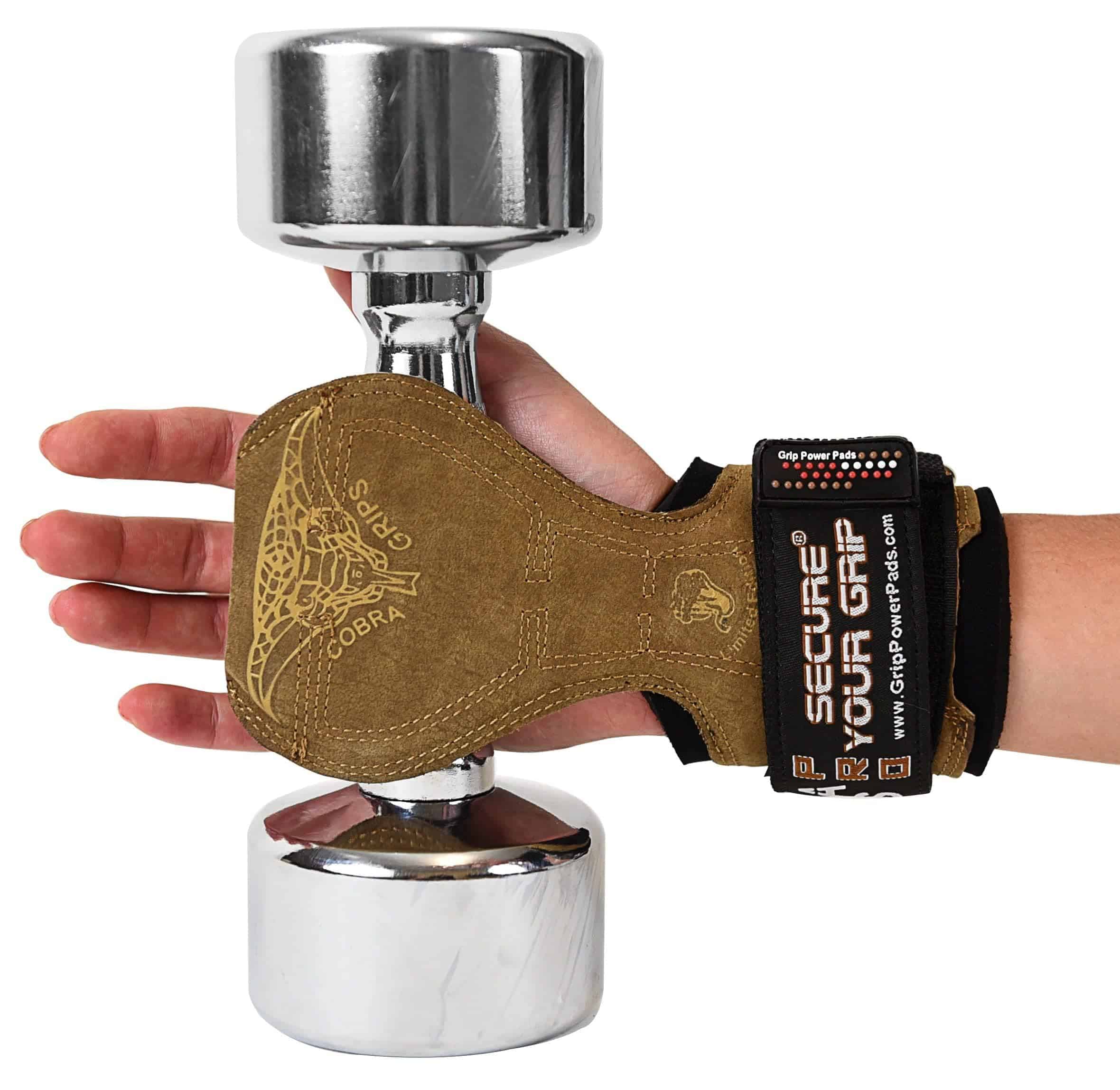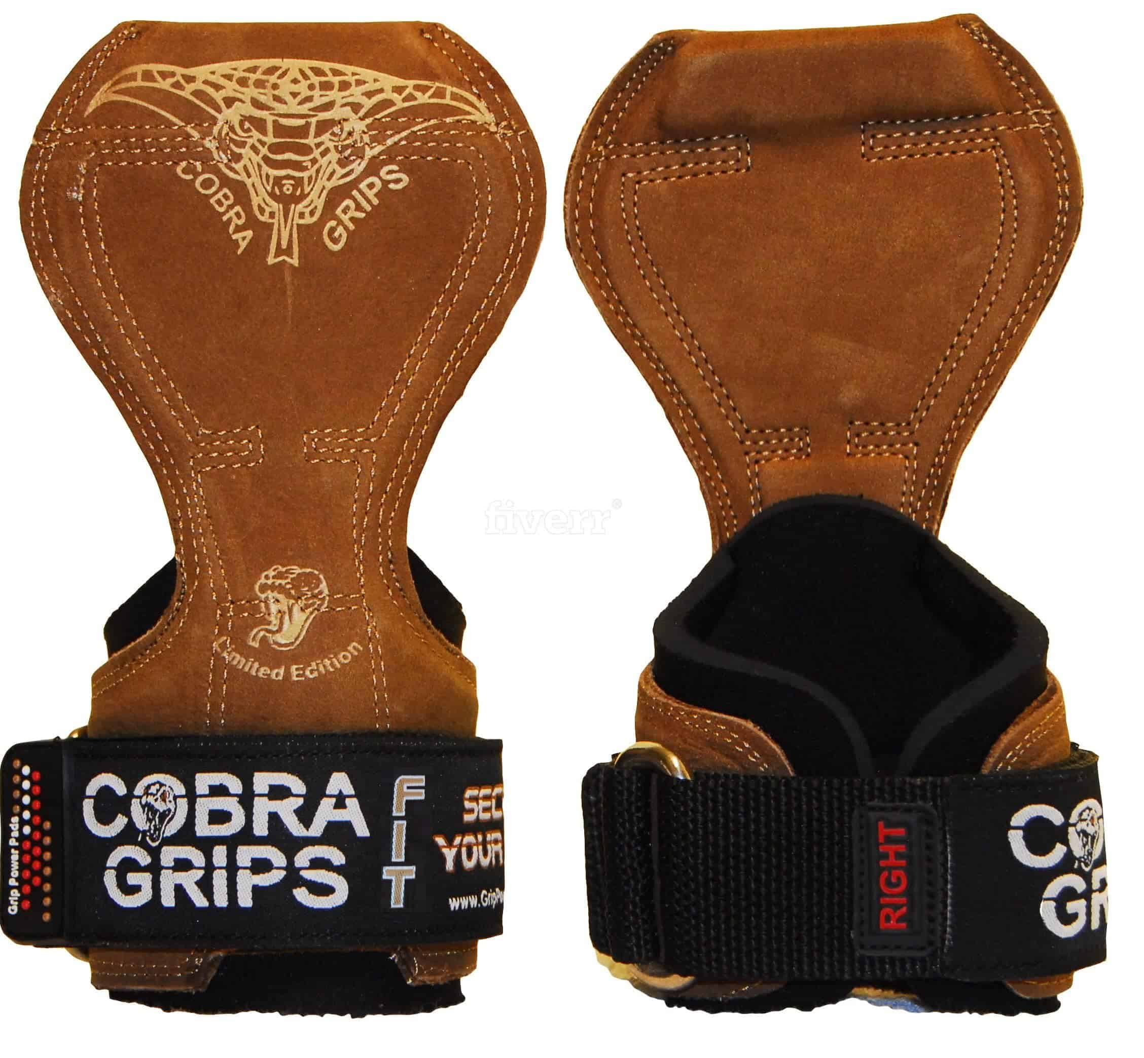 (REGISTERED PATENT No. 2750562 D752695) EL ÚNICO EQUIPO QUE NECESITAS EN TU BOLSA DE GYM Reemplaza una almohadilla de agarre, tus agarres de elevación y ganchos de potencia. Edición limitada MODELO FIT hecho de Cuero NUBACK marrón y goma reforzada en el interior. EL COLOR DE LOS AGARRES PUEDE VARIAR DEBIDO AL CUERO NATURAL QUE UTILIZAMOS. Nuestro modelo Cobra Grips PRO se ajusta a tamaños de muñeca desde 5.5 hasta 8.75 La mayoría de los hombres encontrarán que la versión PRO tiene un ajuste cómodo. Nuestro modelo Cobra Grips FIT se ajusta a tamaños de muñeca desde 4.25 hasta 7.0 Muchas mujeres encuentran que la versión FIT es la más cómoda. Di adiós a las VENDAS PARA MUÑECA Nuestros agarres de levantamiento tienen un envoltorio de soporte de muñeca incorporado para una comodidad mejorada. ¡NO MÁS RESBALONES, NO MÁS ROZADURAS! Ofrece un amplio acolchado para proteger las palmas y proporciona un agarre firme. UN AJUSTE VERDADERAMENTE CÓMODO. La alternativa de guantes de gimnasio de neopreno completamente ajustable de 6mm no te frenará