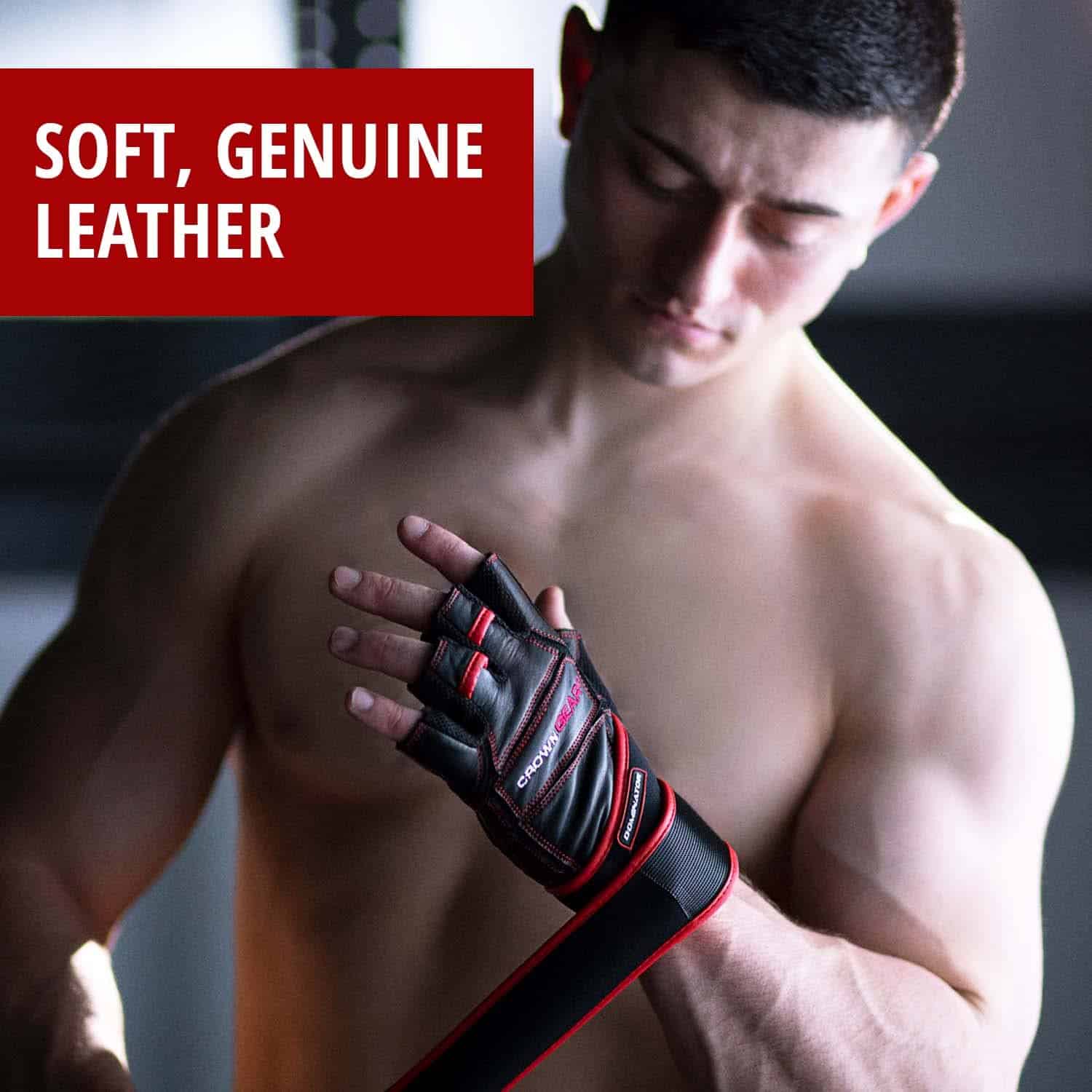 1. CUERO SUAVE GENUINO – COSTURA DURADERA SUPERIOR – Mejora de agarre imbatible – Los guantes Dominator de Crown Gear pueden mejorar significativamente tu agarre, permitiéndote levantar pesos más pesados, hacer más repeticiones y cumplir tus objetivos más rápido. El efecto es especialmente notable si tiendes a sudar, ya que la humedad puede hacer que los pesos resbalen, incluso causando lesiones.