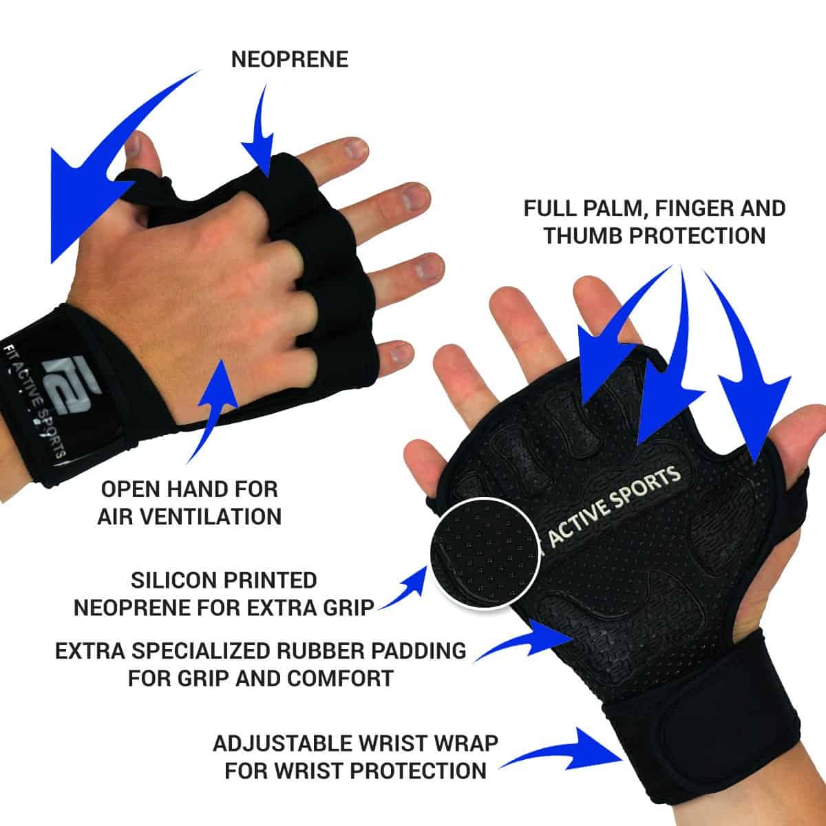 1. Protección Completa de la Palma – Di adiós a los callos y manos rasgadas. Hechos con Neopreno e impresos con silicona para un agarre extra. Además, tienen una capa adicional de material especializado para proteger tus palmas y dedos. Con menos rasgaduras, puedes hacer más repeticiones y establecer nuevos récords personales (PR).