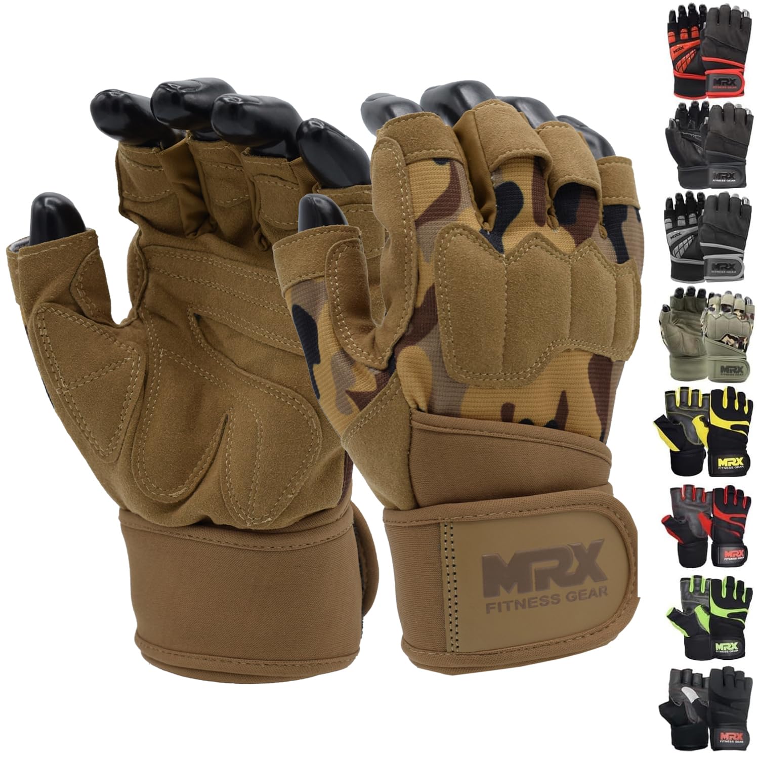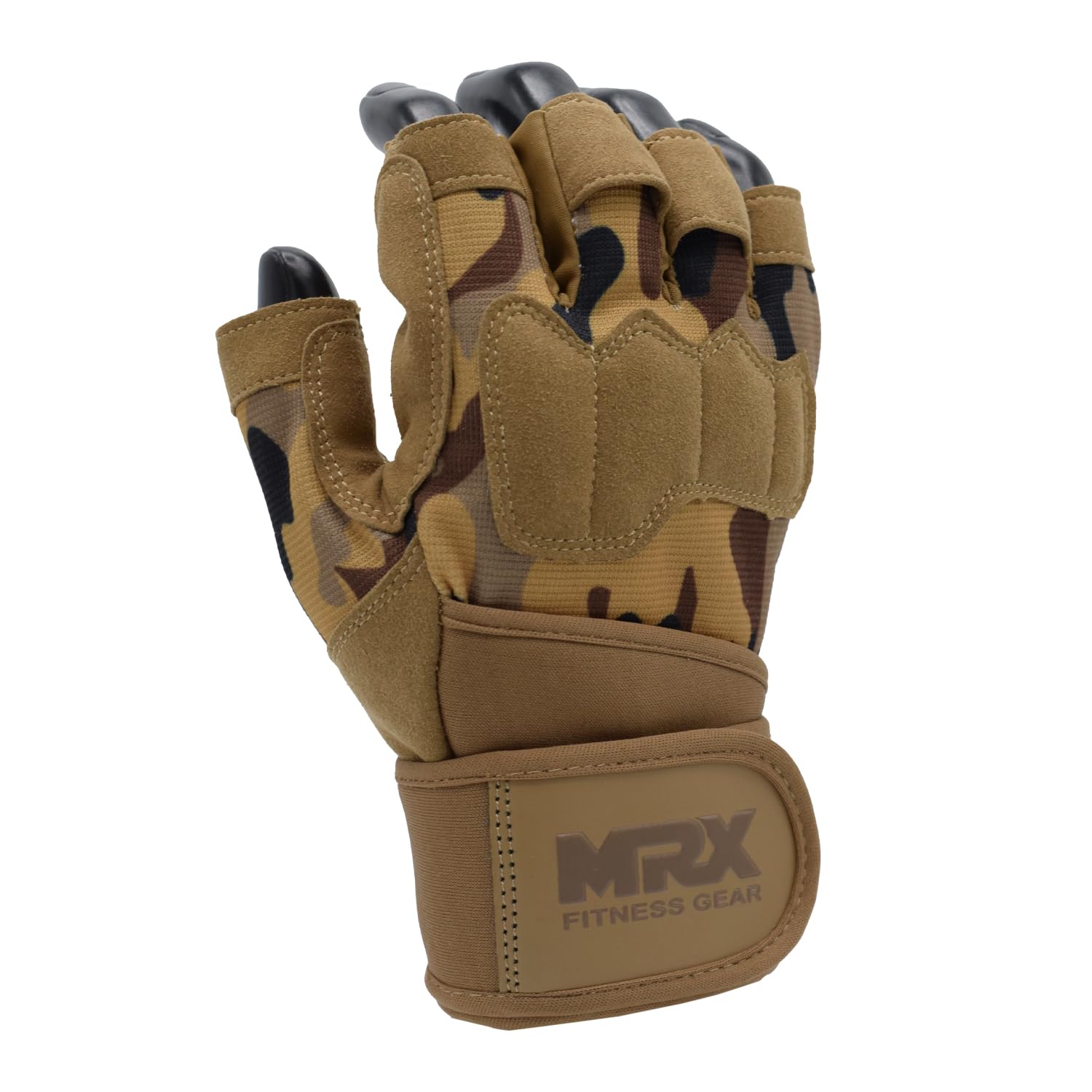 Guantes de levantamiento de pesas MRX -Camuflaje arena marró