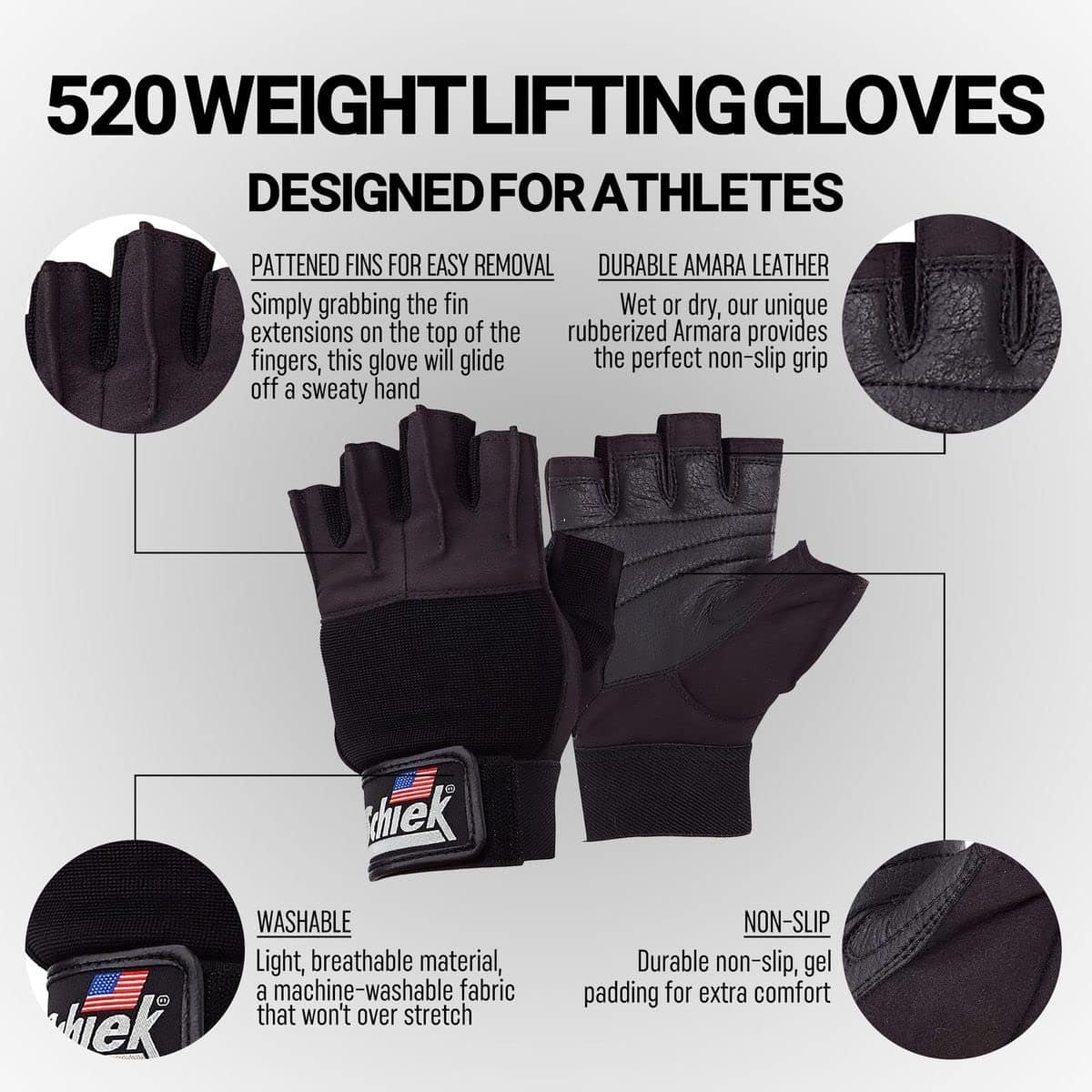 4. 3/4 FINGER LENGTH – El diseño único de longitud de dedo 3/4 de los guantes de entrenamiento de Schiek Sports permite un mejor agarre durante los ejercicios de levantamiento de pesas en el gimnasio.