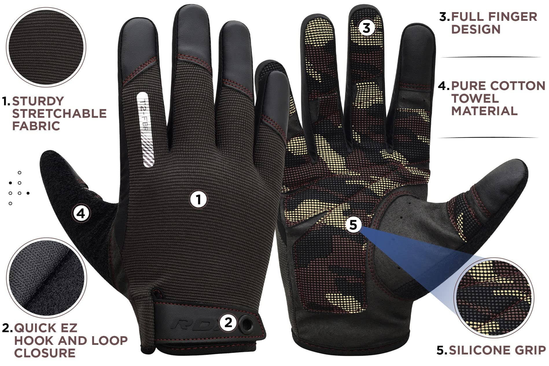 Guantes de Levantamiento de Pesas RDX con -Café