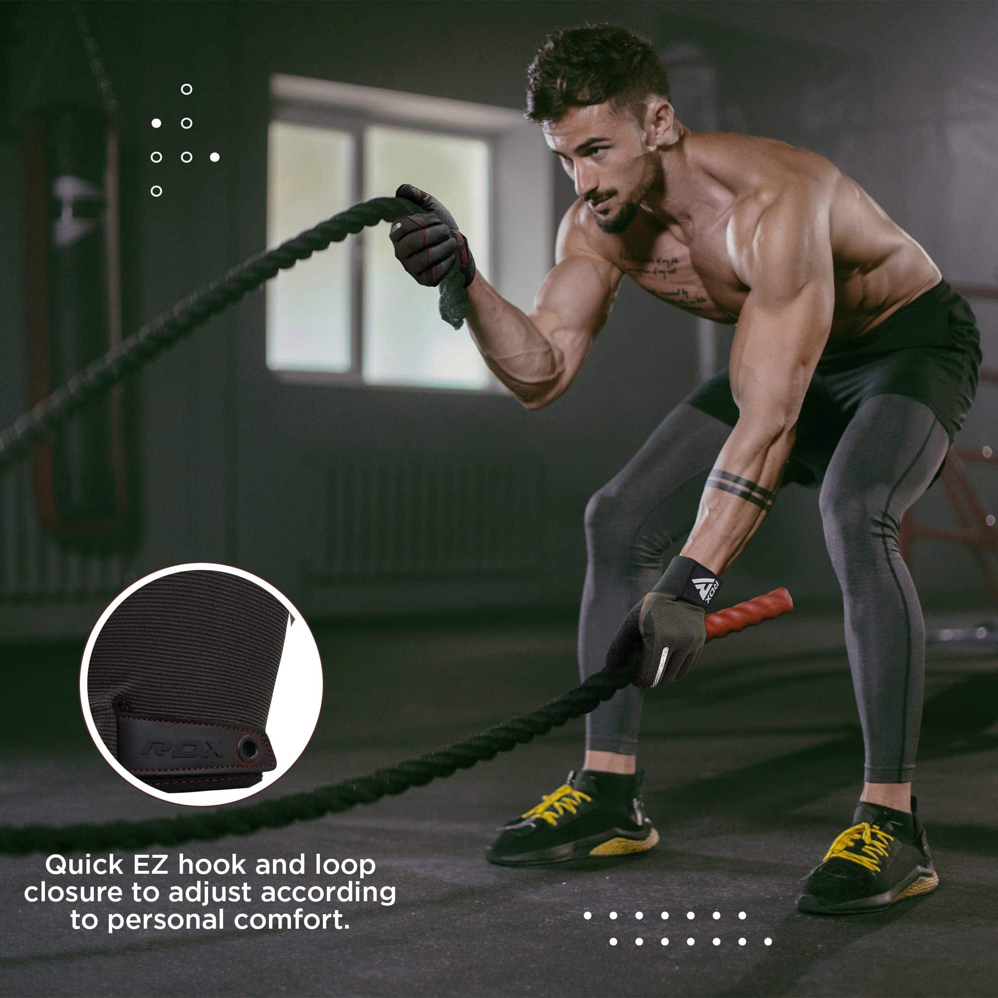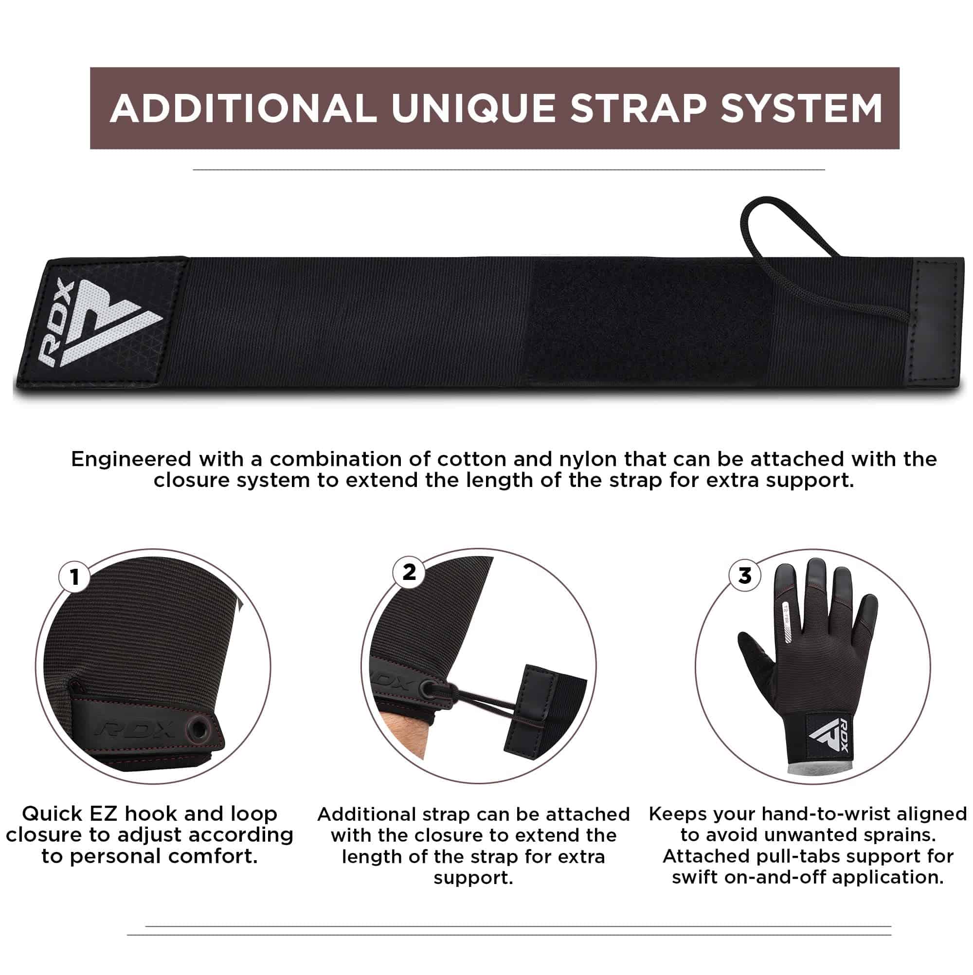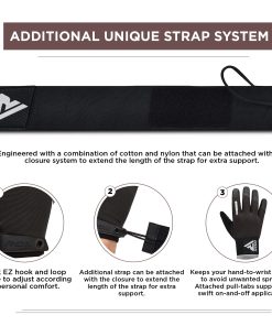 2. CORREA HÍBRIDA ÚNICA Estos guantes de entrenamiento de RDX vienen con una correa híbrida desmontable diseñada de forma única. Con la correa más corta, los usuarios pueden controlar sus relojes inteligentes u otras joyas de muñeca durante sus entrenamientos, mientras que la correa adicional de 34 cm de longitud se puede sujetar a los guantes de culturismo cuando se trabaja con pesos más pesados donde se necesita más soporte de muñeca.