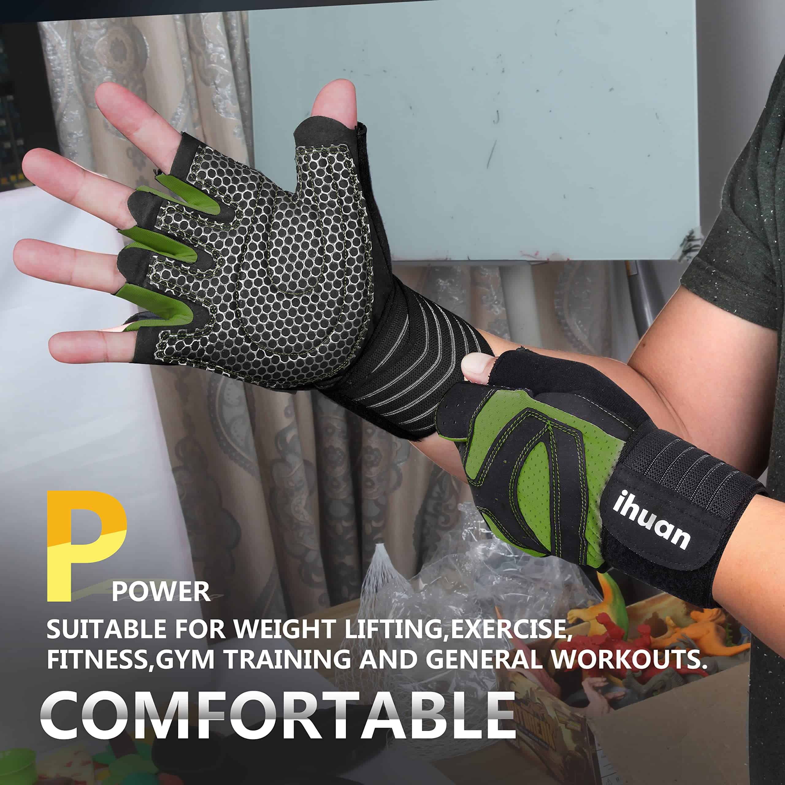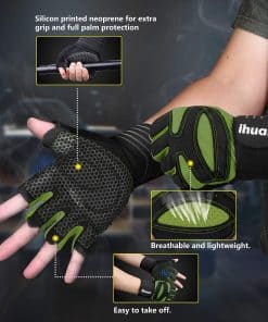 1. Protección total de la palma: No más manos rasgadas y sin callos. Los guantes de entrenamiento Ihuan protegen completamente tus manos. El soporte de muñeca puede proteger tus brazos de esguinces. Y la almohadilla de espuma en la palma amortiguará el impacto de los aparatos deportivos. Fabricados en neopreno impreso con silicona, un material de alta calidad que es resistente al agua, productos químicos peligrosos, aceites, calor y envejecimiento, lo que los convierte en un par de guantes duraderos de larga duración. Menos raspaduras y desgarraduras, más rizos y récords personales.