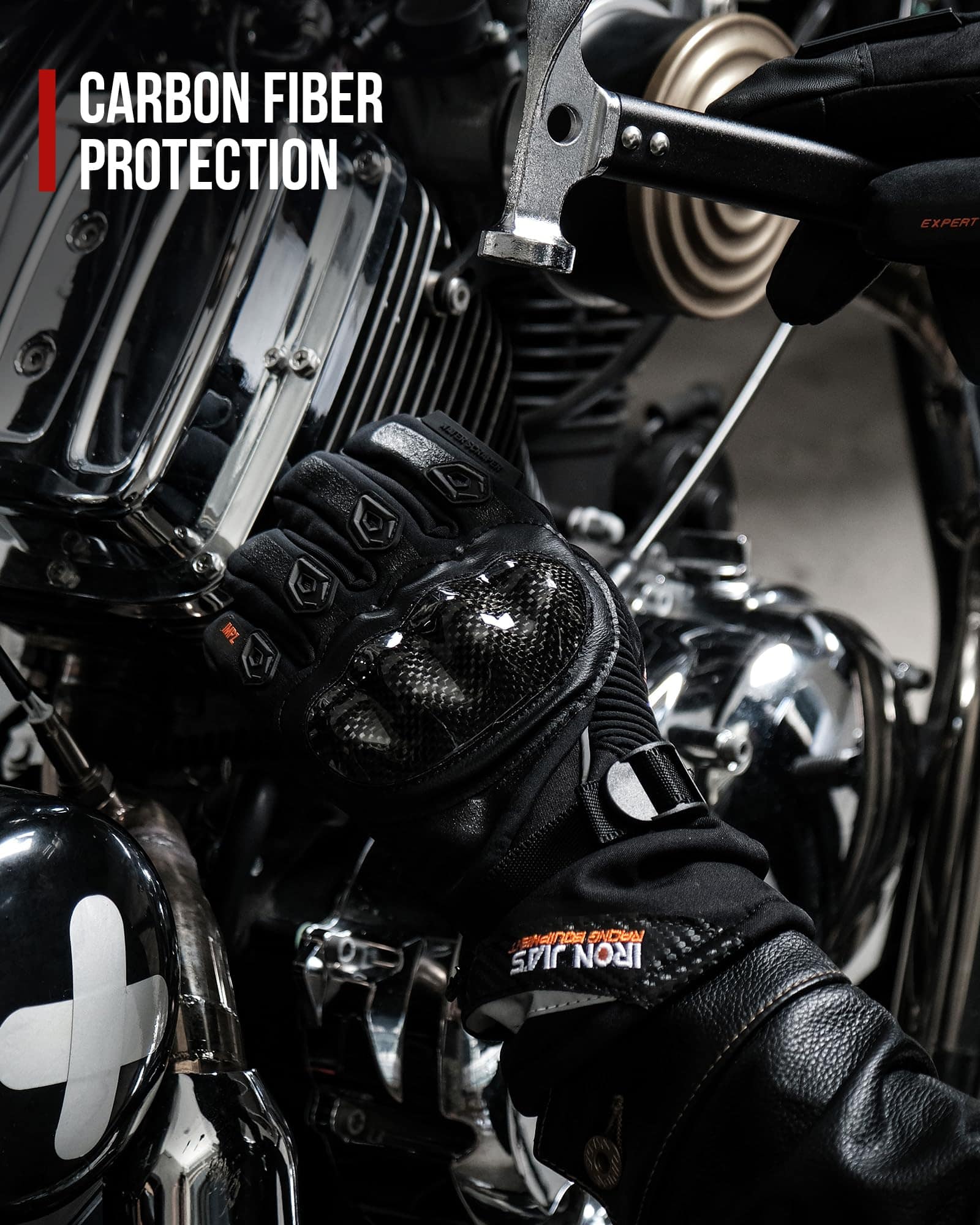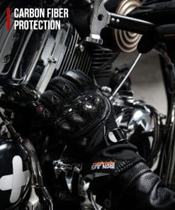 2. Protección de nudillos y manos Los guantes de protección para moto tienen protectores de nudillos de fibra de carbono en la parte posterior, parches antideslizantes en el lado de la palma. Acolchado adicional alrededor de los nudillos ofrece protección para tus manos en caso de un evento imprevisto, como una caída y caída de la moto.
