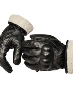 Guante de moto retro de longitud media súper fresco. Construido con cuero de cabra anilina premium con alta resistencia al desgarro y la abrasión. Forro 100% poliéster para una sensación suave y cómoda. Palma reforzada en cuero. Costuras de nylon de alta resistencia en todo el guante. Protectores de nudillos internos de aleación termoplástica para una protección adicional.