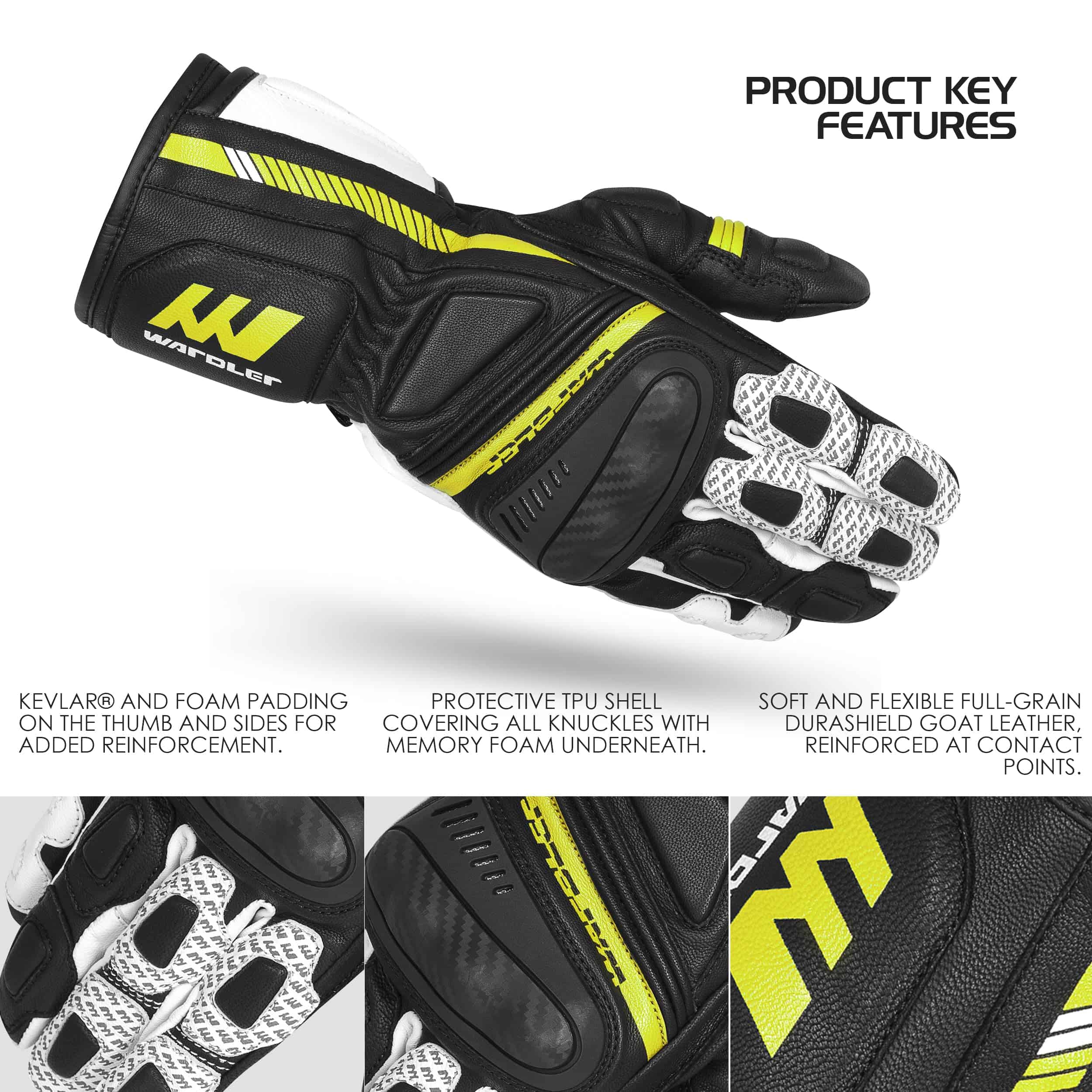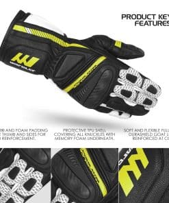 Para el motorista de verano que busca un ajuste de carrera y ventilación sin tener que comprometer la seguridad, los Guantes de Motocicleta de Cuero de Cabra Wardler son la elección premium. El resistente revestimiento exterior de cuero cuenta con características de protección como un protector de nudillos rígido de carbono, un deslizador de palma rígido y un cierre doble de puño largo.