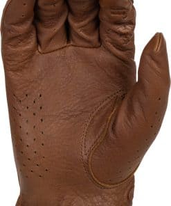 Piel de ciervo premium. Construcción resistente. Puño corto para jinetes de estatura baja. Diseño de una sola capa. Acabado en color teñido rico.