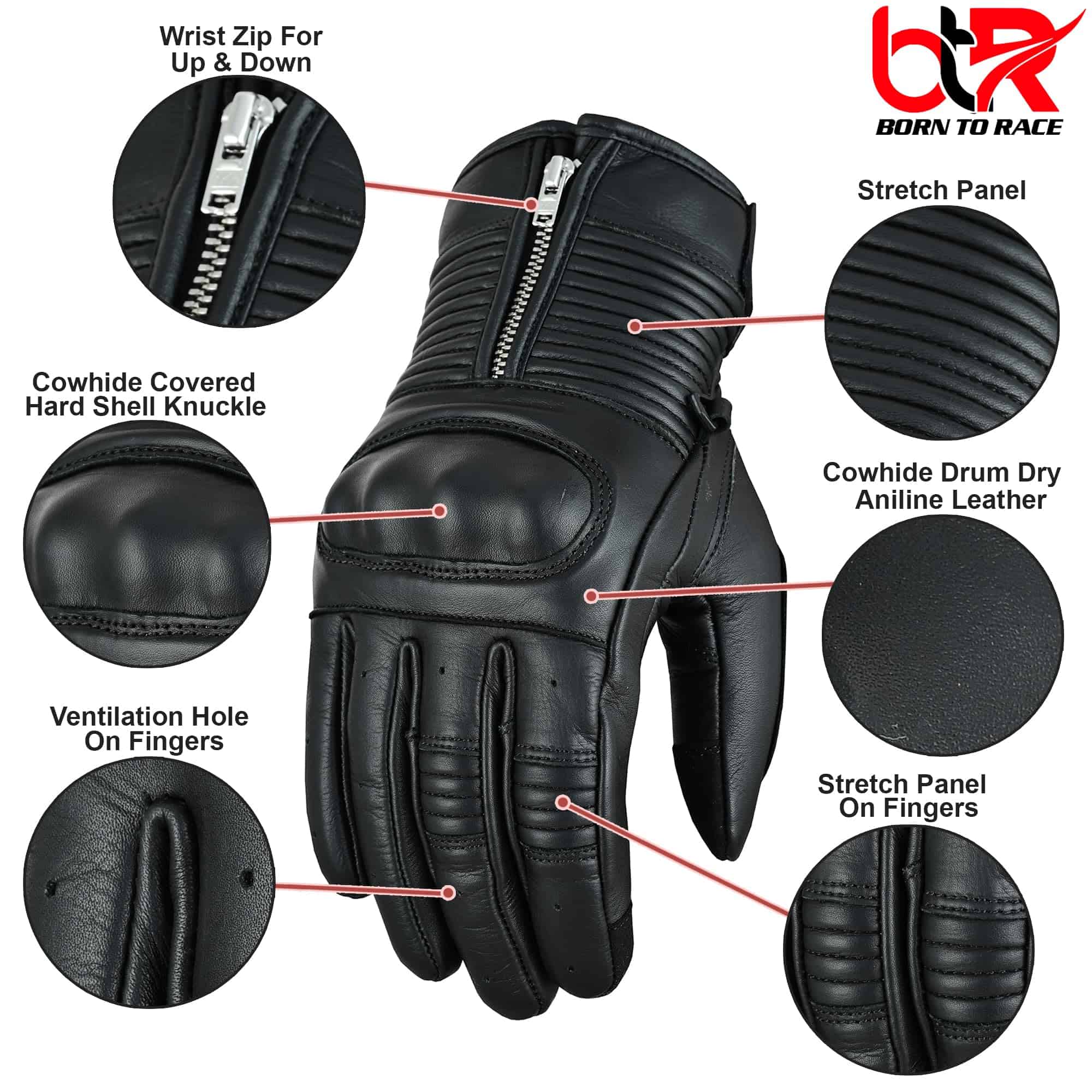 Guantes de Motocicleta Premium de Cuero de Vaca Drum Seco