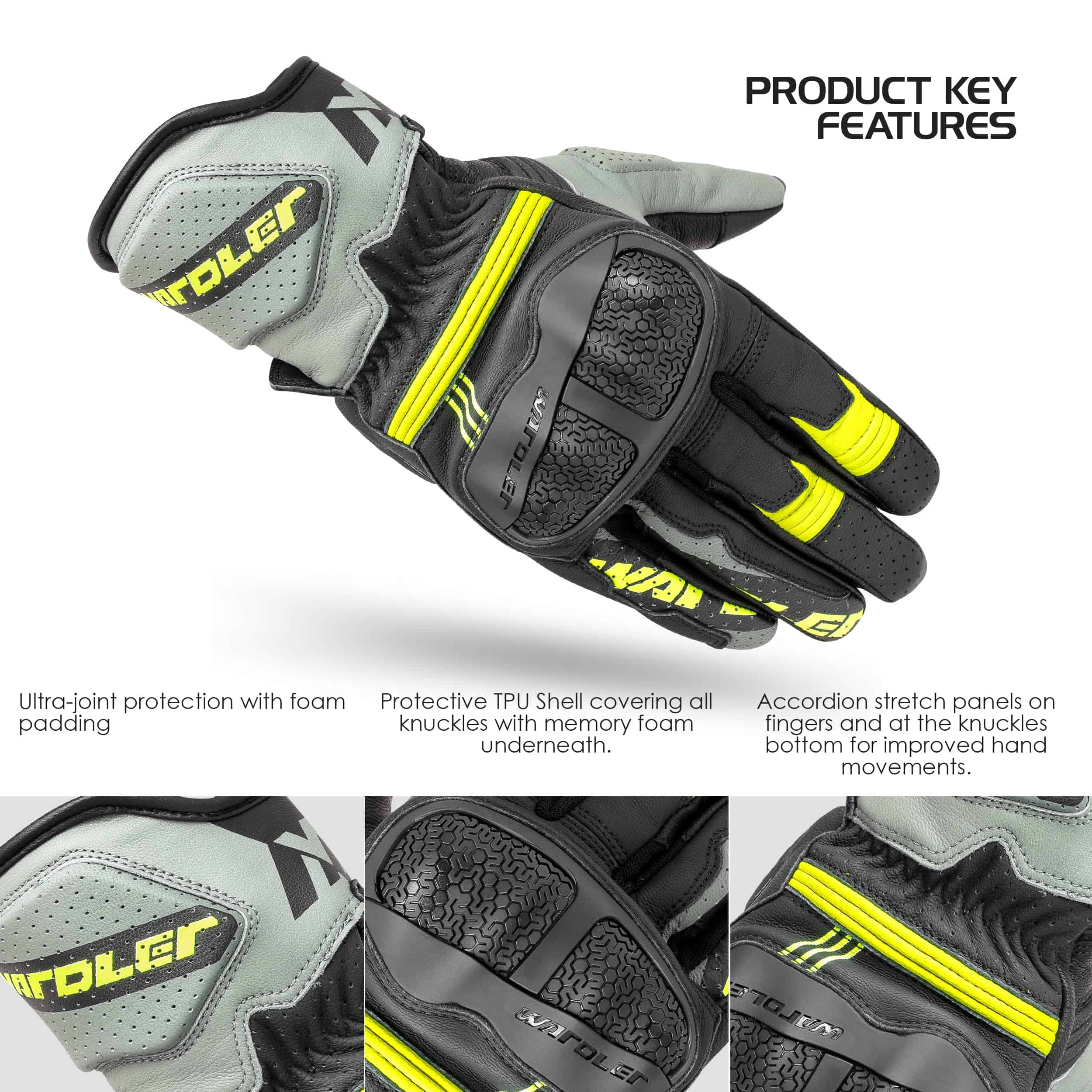 Guantes de motocicleta WARDLER para hombres, -Negro-Gris-Ama