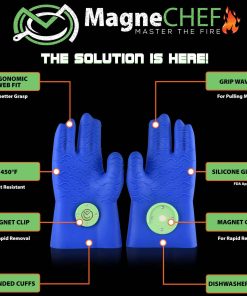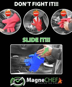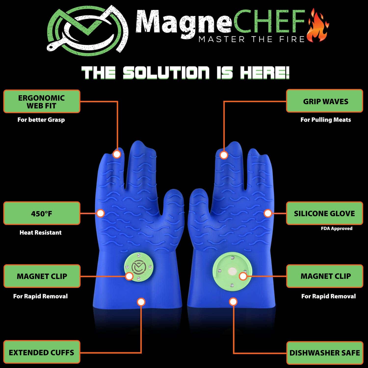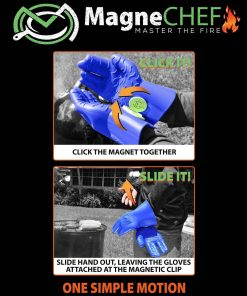 PROTECCIÓN CONTRA EL CALOR INVENTADA POR BOMBEROS: Los guantes de parrilla MagnéCHEF están diseñados para ofrecer una protección efectiva contra el calor al asar, ahumar, freír y hornear. El silicona de grado alimenticio de 3mm de grosor puede resistir temperaturas de hasta 500 F (260 C), actuando como un escudo térmico para garantizar tu seguridad al trabajar sobre calor intenso y llamas abiertas. El diseño de ajuste holgado inspirado en el equipo de bomberos proporciona una protección seria mientras manejas alimentos calientes y utensilios en la parrilla.