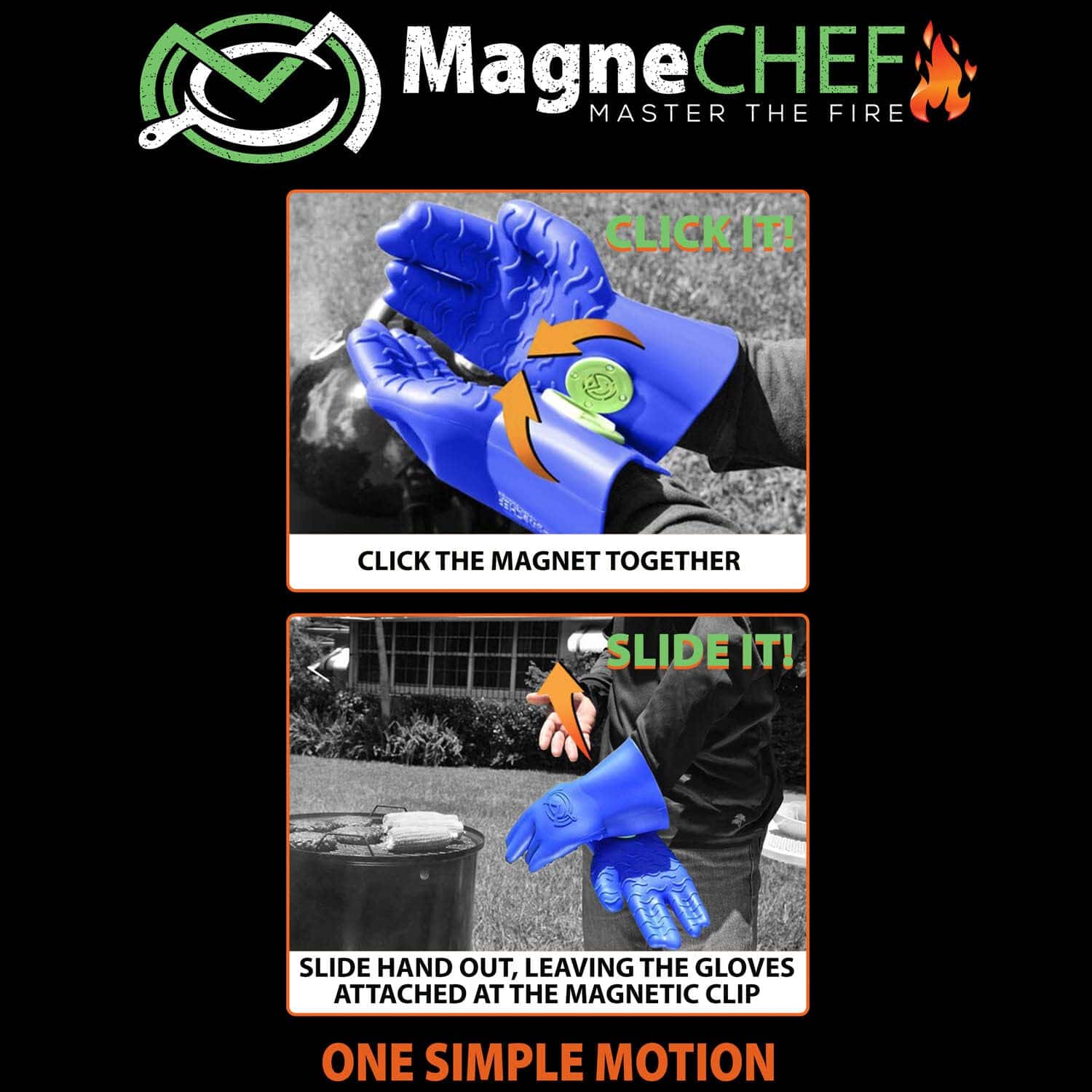 VERSÁTIL para COCINAR EN INTERIOR Y EXTERIOR: Tanto si estás asando o ahumando en el exterior, cocinando en la cocina interior, acampando, friendo o enfrentando tareas de alto calor como desmenuzar carne, tirar cerdo, manipular cortes grandes o mover carbón, troncos o parrillas de la parrilla, los guantes MagnéCHEF están diseñados para adaptarse a cualquier situación. Son duraderos, resistentes al calor y están listos para acompañarte en cualquier aventura culinaria que emprendas.