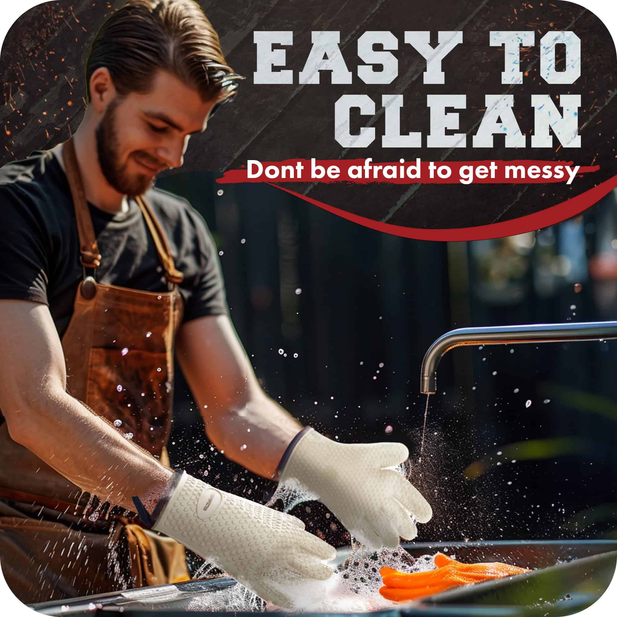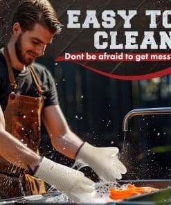 2. No Sudes Después de un Uso Corto – Agregamos una capa de algodón en el interior de nuestros guantes de calor para cocinar que aumentó la comodidad y durabilidad de los guantes. ¡Por el mismo mejor precio, y a pesar de todo eso, la flexibilidad de nuestros guantes de parrilla es increíble! ¡Tienes que probarlo! ¡Así es como se hace una barbacoa correctamente, un juego de accesorios para parrillas imprescindible/accesorios para parrillas de traeger/accesorios para ahumadores guantes resistentes al calor para cocinar.