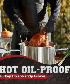 1. Los Guantes Definitivos para Amantes de la Barbacoa. No se queme, para su protección use los guantes de parrilla de 11 pulgadas de Kitchen Perfection, resistentes al calor de hasta 500 grados, capa doble de silicona impermeable y algodón grueso, unos guantes de aislamiento excepcionales que se adaptan a manos grandes y pequeñas por igual, úselos para su traeger, big green egg, freidora de pavo, ahumador oklahoma joe, camp chef, weber, rec tec, black stone, carbón, pit boss, parrillas y ahumadores de gas resistente.