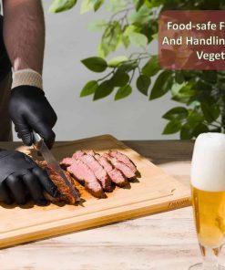 7. Ideal para ocultar grasa y manchas de alimentos – Estos guantes de cocina negros no mostrarán grasa, suciedad o suciedad. Nuestros guantes de horno desechables de nitrilo son perfectos para el servicio y la presentación de alimentos. Use estos guantes negros para picnics familiares, BBQ, fiestas y reuniones.
