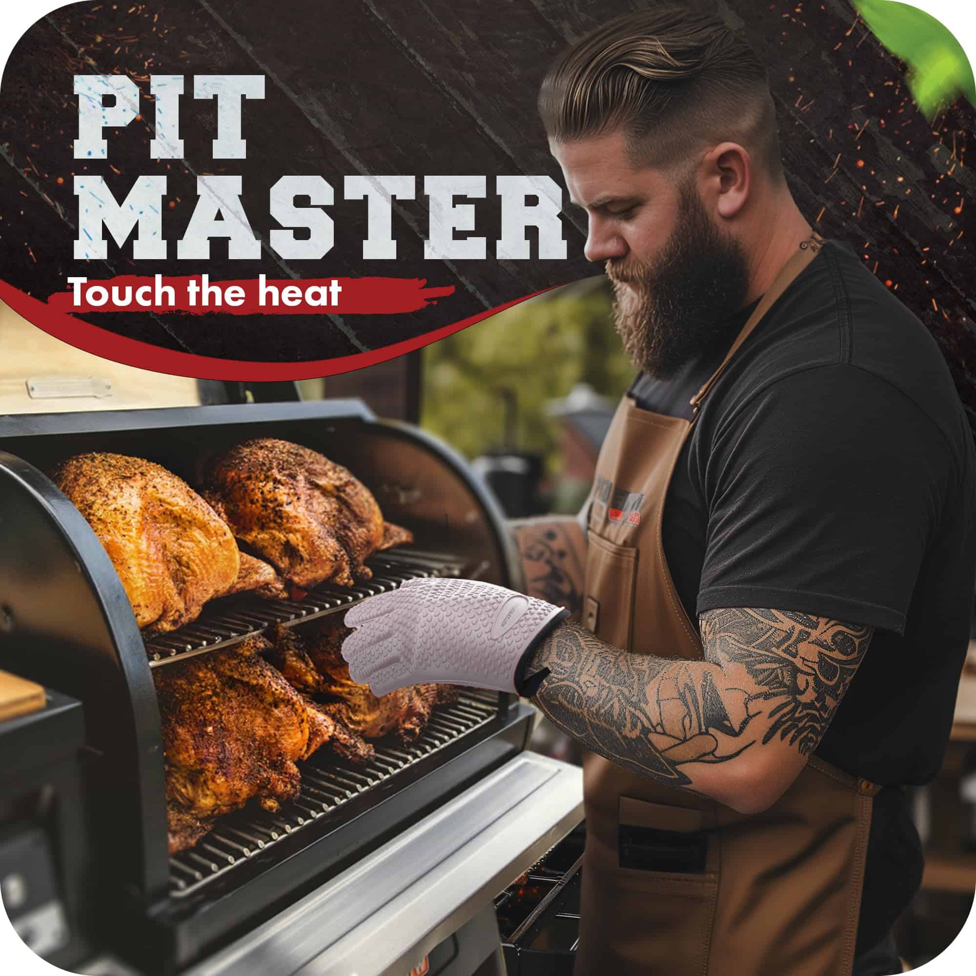 1. Los guantes definitivos para los amantes de la barbacoa. No te quemes, para tu protección utiliza los guantes de parrilla tamaño pequeño 10.6 pulgadas de Kitchen Perfection, resistentes hasta 500 grados, duraderos, de algodón grueso y doble capa de silicona impermeable, guantes de aislamiento excepcional que se ajustan a manos pequeñas por igual, úsalos para tu traeger, huevo verde grande, freidora de pavo, ahumador oklahoma joe, camp chef, weber, rec tec, black stone, carbón, pit boss, parrillas de gas pesadas y ahumadores. 2. No sudes después de un uso corto: Agregamos una capa de algodón dentro de nuestros guantes térmicos para cocinar que aumentó la comodidad y durabilidad de los guantes. ¡Por el mismo precio, y a pesar de todo eso, la flexibilidad de nuestros guantes para asar es asombrosa! ¡Tienes que probarlo! ¡Así es como se hace una barbacoa correctamente, un juego de accesorios de la parrilla imprescindible/accesorios de la parrilla traeger/accesorios para ahumadores guantes a prueba de calor para cocinar. 3. Estás en la liga de los mejores chefs – Después de hacer una encuesta de mercado entre los mejores chefs y asadores, logramos hacer el mejor guante de horno de cocina cómodo con un agarre antideslizante, un guante de talla única que se ajusta perfectamente a todos, hombres y mujeres por igual, ¡simplemente el set perfecto de 2 que te protegerá de cualquier peligro, desde el calor que proviene de tu ahumador o parrillas de gas para barbacoa al aire libre hasta la parte superior de tu estufa en el interior! ¡Te tenemos cubierto! No te conformes con una imitación barata. Excelentes regalos para papá. 4. Por Kitchen Perfection – Si sientes que no obtuviste el mejor producto, no dudes en contactarnos, estamos aquí para ti para cualquier problema, problemas de tamaño y más. Estos son los mejores guantes de barbacoa para cocinar resistentes al calor para los guantes protectores de los hombres y mujeres. ¡Por eso a todo el mundo le gustan tanto! Será mejor que consigas algunos para regalar a tus amigos. 5. Consigue mucho más 3 bonos – No te vamos a dejar ir sin llevarte todo lo que puedas de nosotros. Obtén dos perchas adhesivas para un almacenamiento cómodo y dos libros electrónicos llenos de recetas «comida deliciosa de la parrilla» y «recetas saludables de ensaladas». Teniendo todo eso, tienes el set completo de nuestro par de guantes de silicona para horno – guantes resistentes al calor para convertirte en un fumador de carne profesional, asador de barbacoa, cocinero o panadero. ¿Todavía estás aquí? ¡Deja de perder tu tiempo! No te conformes, esta inversión tiene sentido.