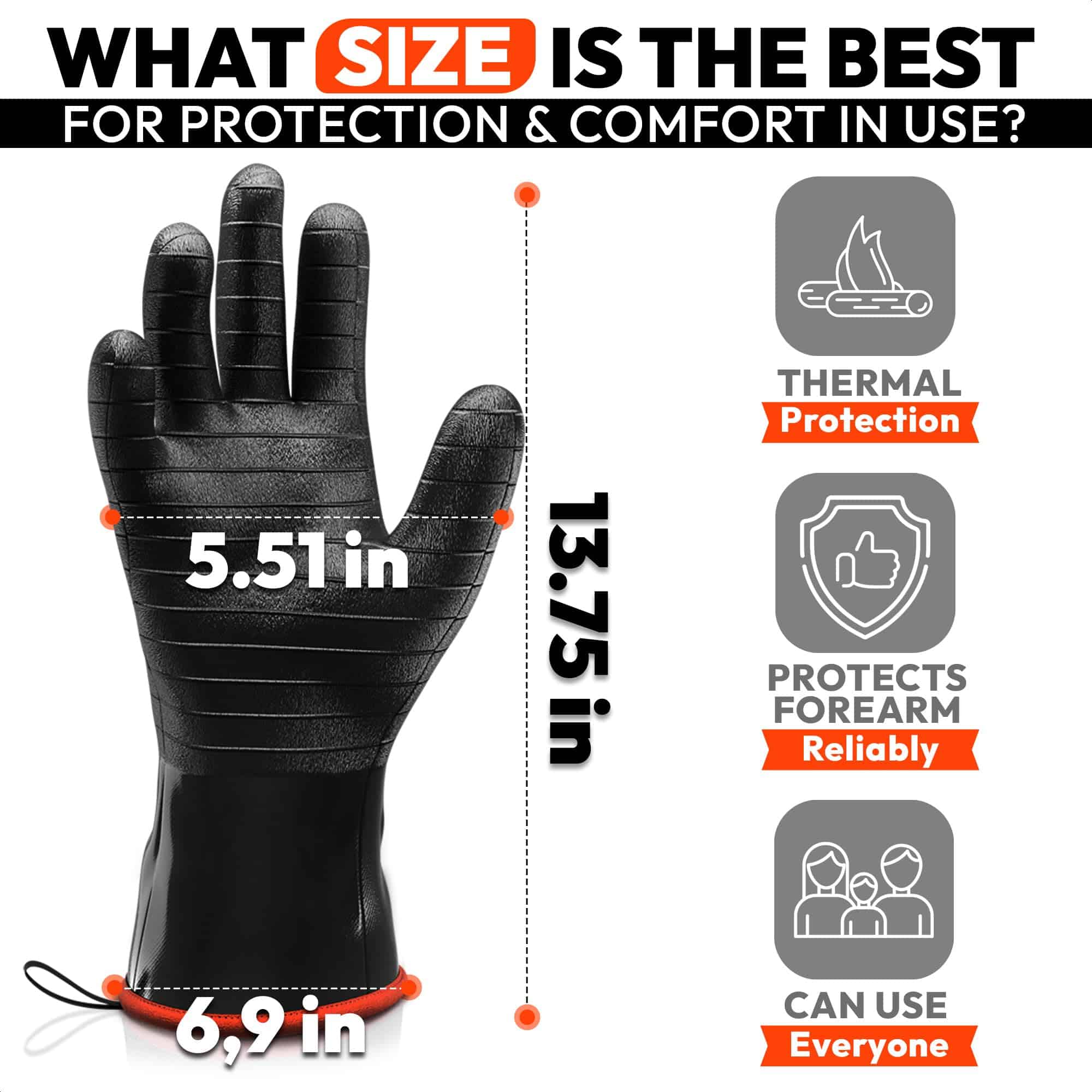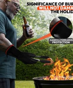 5. Guantes resistentes al calor multifuncionales: Los guantes aislantes más versátiles para hombres se pueden usar en la cocina para productos horneados como barbacoa, parrilla, freidora de pavo, ahumador de carne, horno para pizza, ahumador interior o incluso la parrilla de pozo de fuego