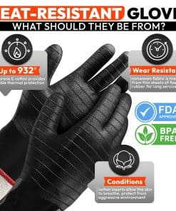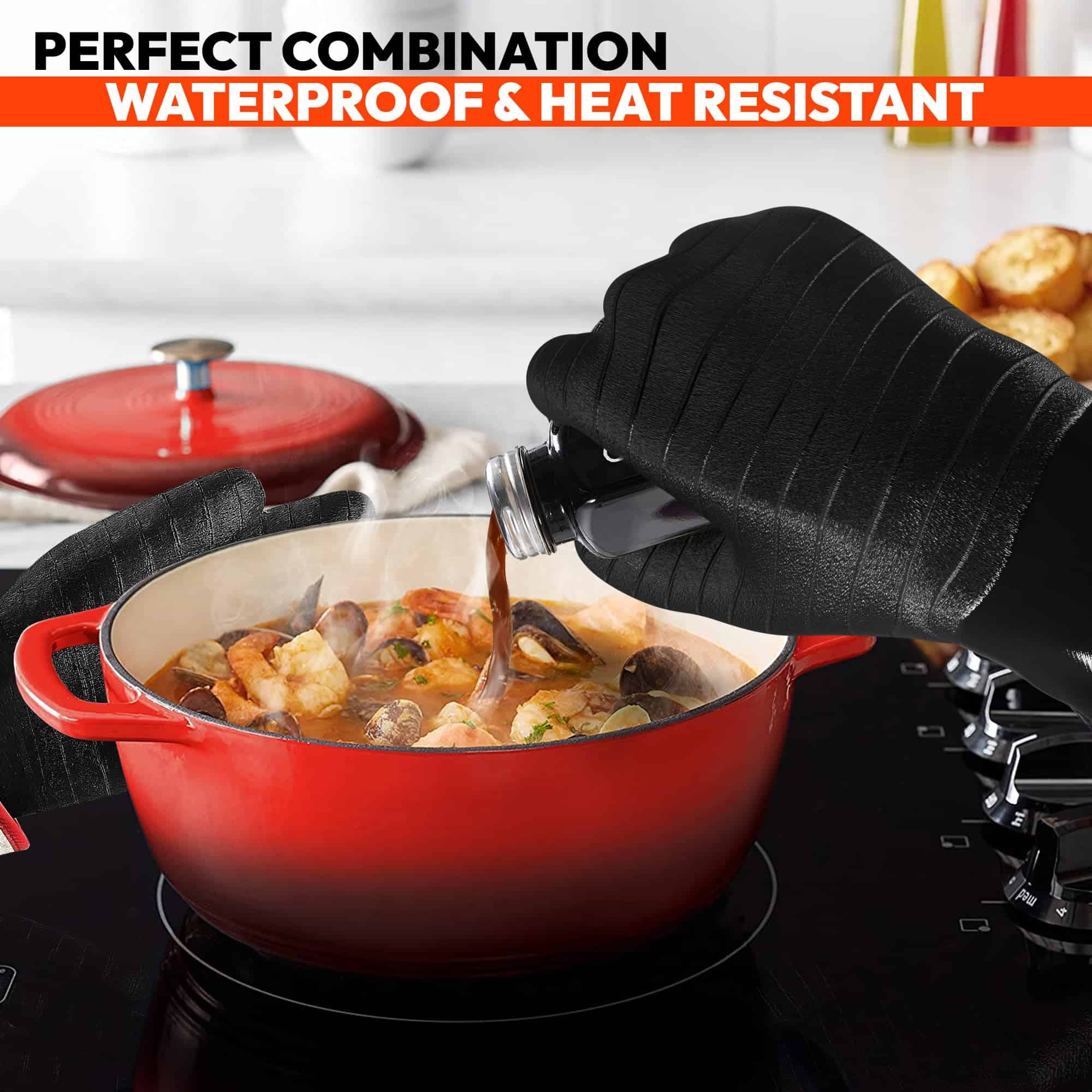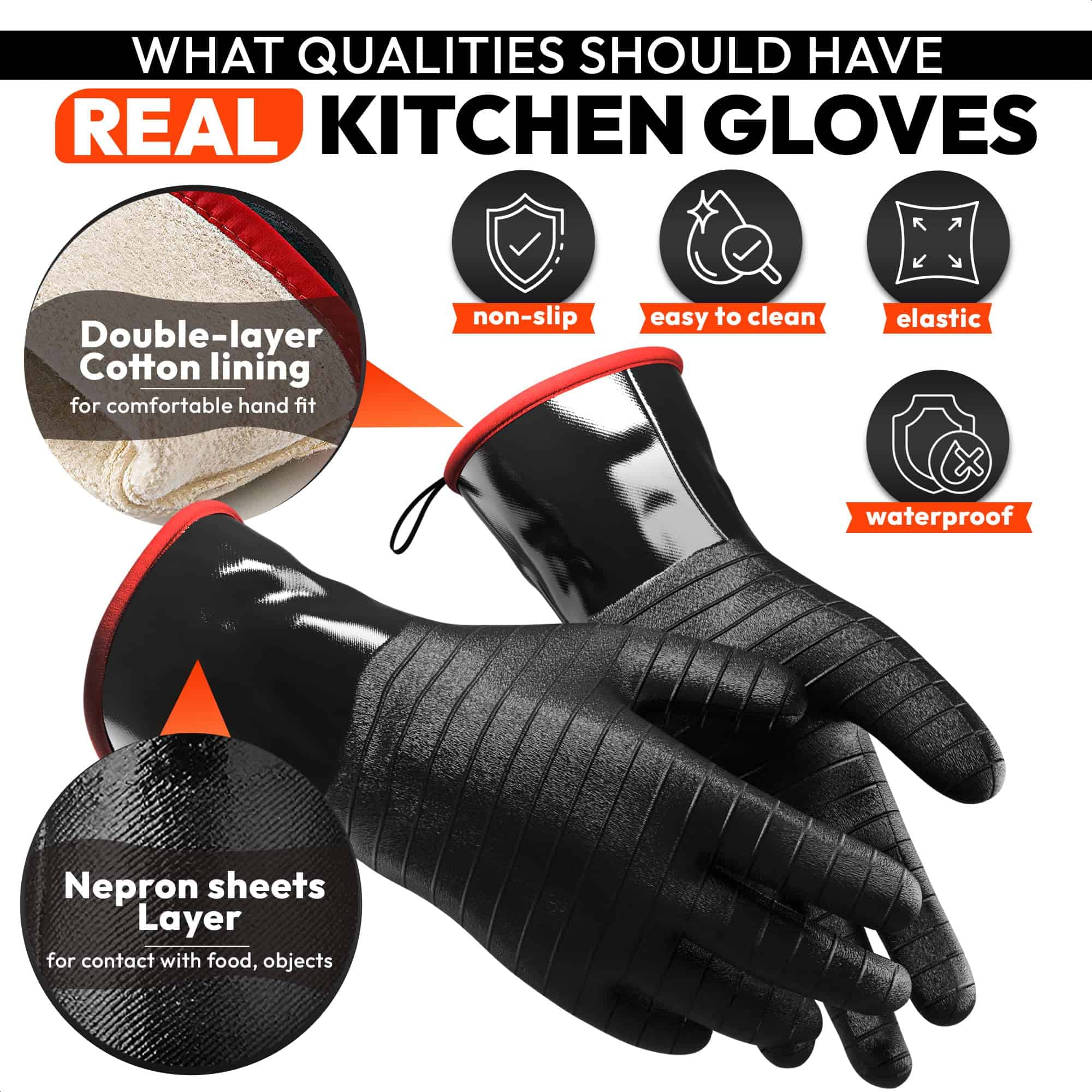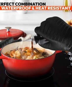 1. Guantes de cocina de neopreno de alta calidad: Estos guantes térmicos para cocinar tienen un forro de algodón suave de doble capa que proporciona un ajuste cómodo máximo con buena aislamiento. Estos guantes de preparación de alimentos son resistentes a las manchas y también estos guantes calientes antideslizantes y fáciles de limpiar con súper resistencia.