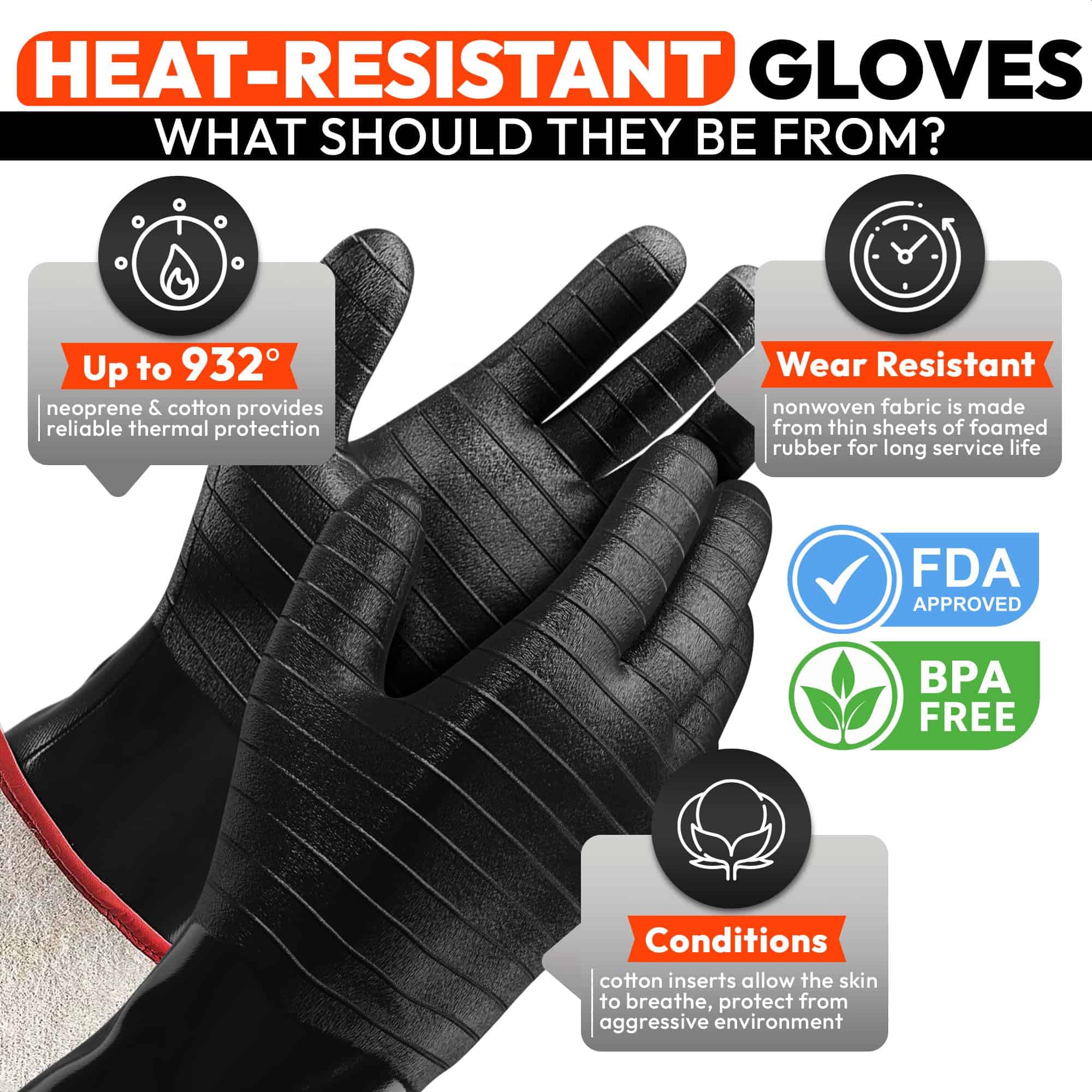 2. Guantes de horno protector destacados: Estos guantes de barbacoa están recubiertos con neopreno para una protección adicional. Los guantes de cocina para horno protegen las manos y los antebrazos del calor o el humo. Los guantes de carne permiten manipular la carne caliente de manera conveniente.