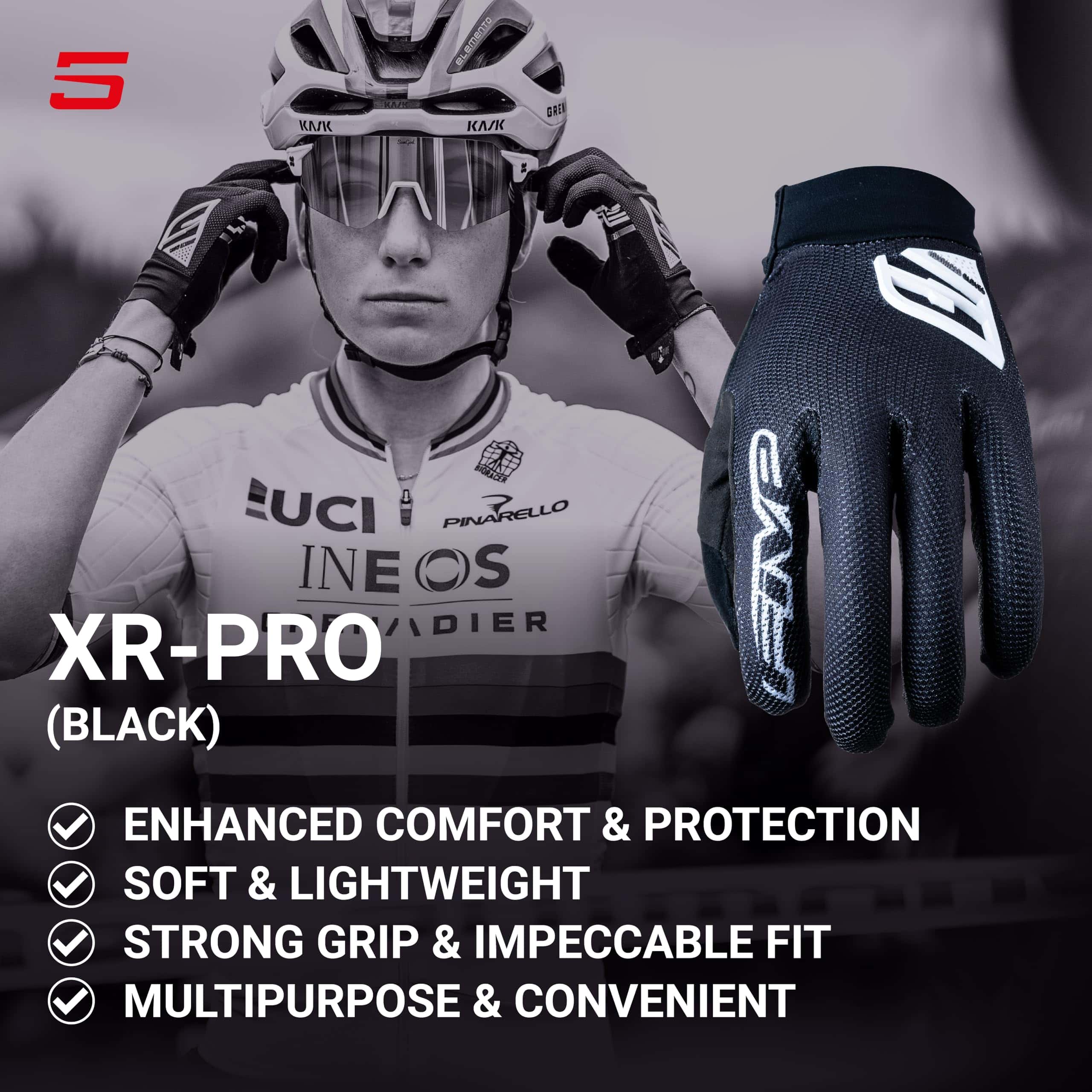 1. Guantes para bicicleta para carreras y paseos casuales – XR Pro es la oferta de FIVE Gloves para aquellos que necesitan guantes de bicicleta de alta calidad para hombres y mujeres en viajes rugosos y suaves. Haciendo hincapié en la comodidad, nuestros guantes son adecuados para carreras de bicicletas y viajes en carretera.