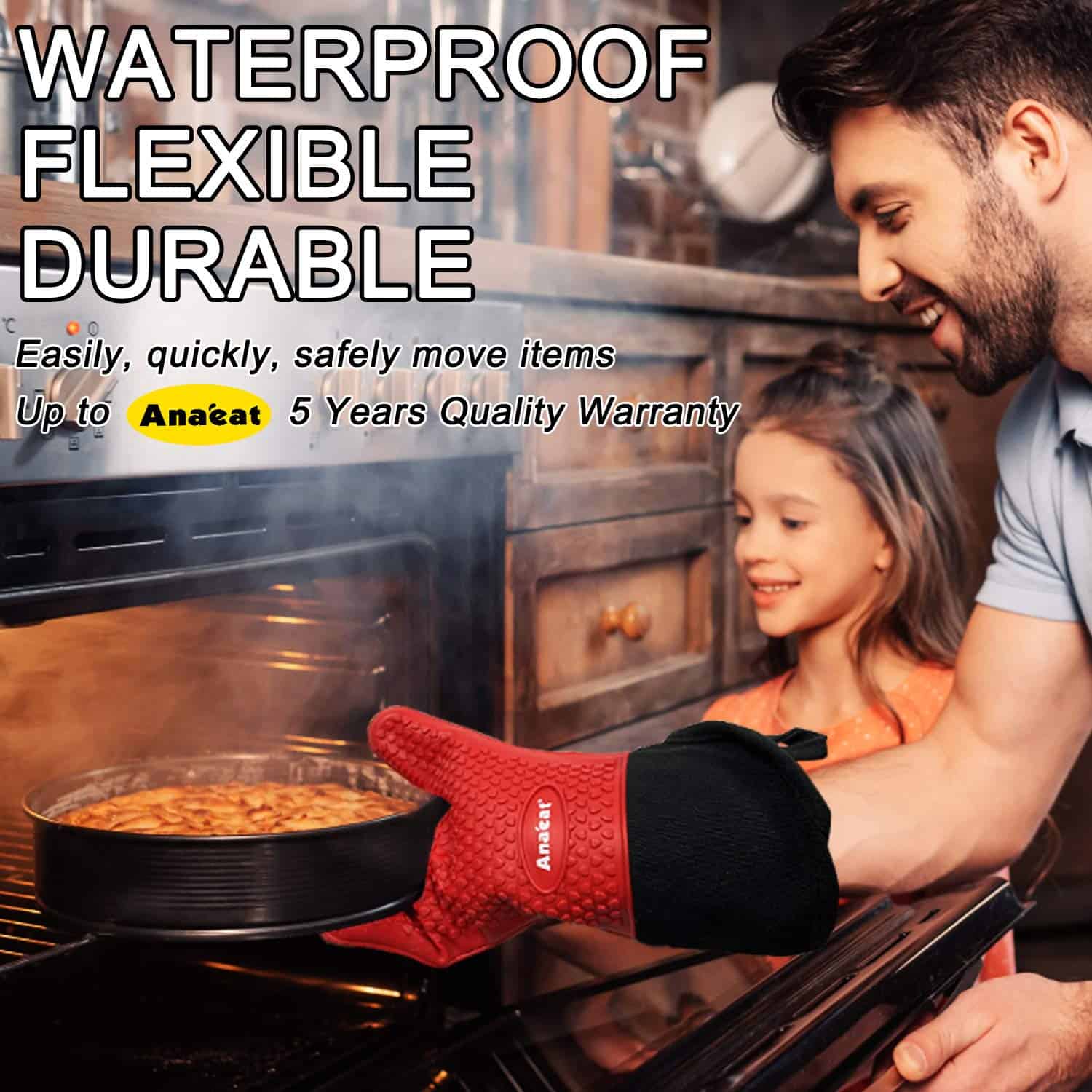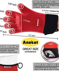 5. GARANTÍA DE CALIDAD DE MARCA – LA CALIDAD PUEDE HABLAR POR SÍ MISMA. Anaeat se enfoca en la investigación y desarrollo de utensilios de cocina. Estamos tan seguros de que tenemos los mejores guantes de silicona en el mercado. Si tienes algún problema con los productos de Anaeat, no dudes en enviarnos un mensaje y te los enviaremos de nuevo de inmediato de forma gratuita o te devolvemos el dinero. Nos preocupamos mucho por cada pedido e intentamos brindar a nuestros clientes accesorios de cocina SALUDABLES Y RESISTENTES.
