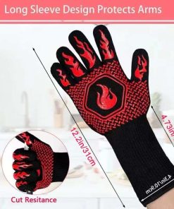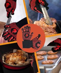 Guantes para Parrilla BBQ Resistentes al Calor 1472? Alta Resistencia al Calor a Prueba de Fuego para Asar Ahumar Barbacoa Lavables Guantes de Horno Largos a Prueba de Calor Extremadamente Calientes para Cocina Hornear (Rojo) – Premium Triple Material Los guantes resistentes al calor constan de 3 materiales. El primer material son tiras de silicona para asegurarse de que tus objetos no resbalen en tus manos. La segunda capa es fibra de aramida de ultra alta resistencia con alta resistencia al calor. El tercer material es poliéster-algodón, que proporciona doble protección y comodidad. – Mayor resistencia al calor mejorada Nuestros guantes para parrilla brindan una mayor resistencia al calor (1472 f) en comparación con los guantes anteriores (934 f). Los guantes de horno son de un material resistente al corte y al calor. Perfectos para proteger tu mano cuando manipulas pinzas para parrilla, enciendes carbón en el encendedor de chimenea, sacas carne de la parrilla, cortas, cocinas, horneas, haces trabajos de carpintería, soldadura o manipulas objetos muy calientes al aire libre. – Diseño de silicona antideslizante Los guantes para parrilla son ligeros y flexibles. Los guantes de horno con tiras de silicona de grado alimenticio garantizan que tus objetos no se resbalen de tus manos. El diseño de cinco dedos es lo suficientemente flexible para sostener utensilios de cocina, parrillas y otros objetos calientes. – Fácil de limpiar y almacenar Los guantes de cocina de silicona soportan lavado a mano y lavado a máquina. Limpia fácilmente la suciedad de los guantes de hornear para mantener la higiene. Los guantes para parrilla vienen con protectores de muñeca extendidos. Ya sea que estés moviendo una olla caliente, asando bistecs o barbacoa costillas, te proporciona la protección más segura para tus manos y muñecas. – Fácil de usar, limpiar y almacenar No hay diferencia entre la mano derecha o izquierda de los guantes BBQ, puedes usar en ambos lados. Los guantes BBQ vienen con un diseño de tira adicional que permite colgar los guantes después de lavarlos a máquina, fácil de secar. NOTA: Los guantes de cocina resistentes al calor prolongan el tiempo que los objetos calientes pueden ser sostenidos, pero no ofrecen una protección permanente contra el fuego y el calor.