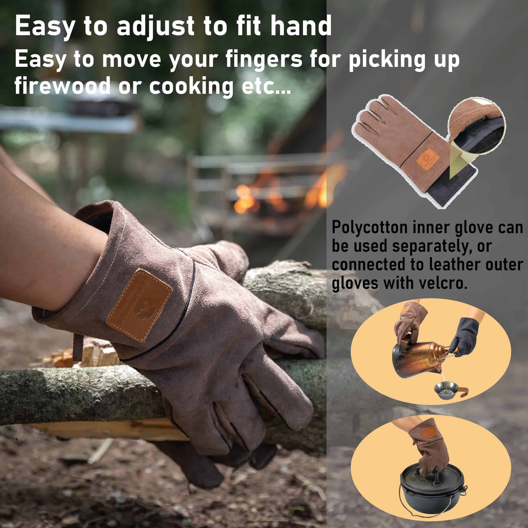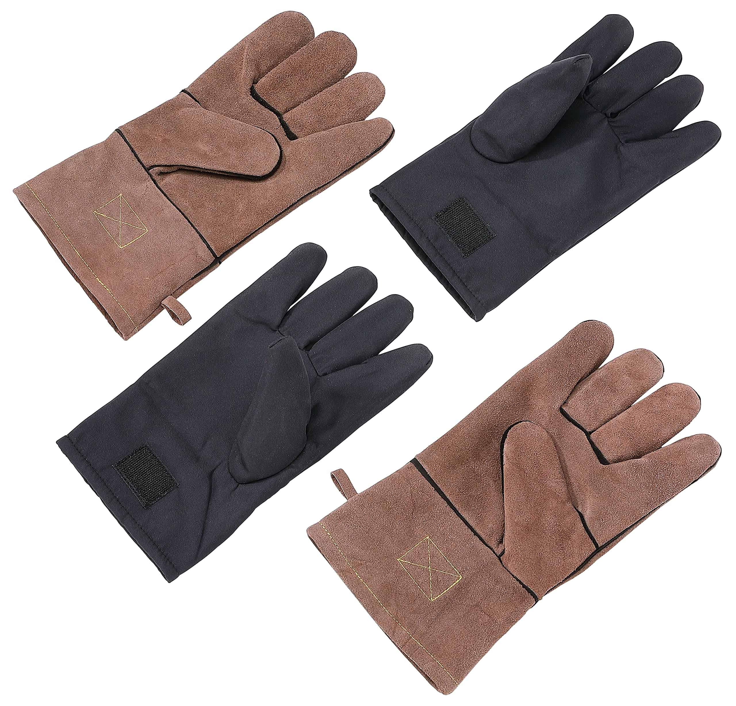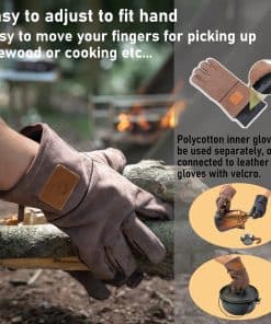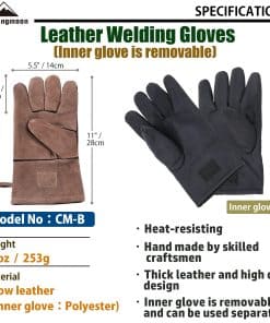 Este par de guantes para parrilla BBQ resistentes al calor está hecho de cuero de alta calidad y fabricado por expertos artesanos. Estos guantes son ideales para proteger tus manos mientras cocinas, sueldas o haces barbacoa. La capa externa de cuero grueso proporciona una resistencia superior al calor, permitiéndote manipular sin temor elementos calientes como leña, parrillas u hornos. Además, los guantes internos de poliéster son desmontables, lo que te brinda la opción de usarlos por separado cuando necesites mayor destreza manual. Con una longitud total de 11 pulgadas, una longitud de dedos de 3.5 pulgadas y un ancho palmar de 5.5 pulgadas, estos guantes son ergonómicos y súper cómodos de usar. No solo son ideales para BBQ, sino que también son perfectos para tareas de soldadura, forja y cocina en general. ¡Protege tus manos con estilo y funcionalidad con estos guantes de cuero de primera calidad!