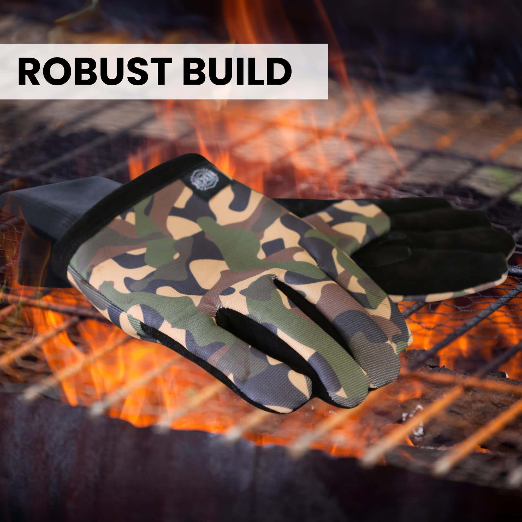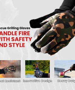 5. La tela impresa de nuestros Guantes de Parrilla Rescue no es resistente al calor. La zona resistente al calor es el cuero de vaca que hace contacto con superficies calientes. Por favor, ten cuidado al usar los guantes para evitar quemaduras o lesiones.